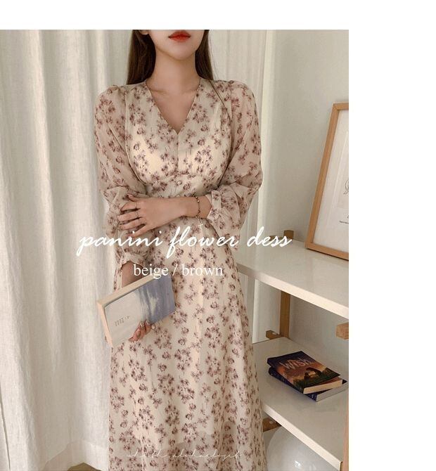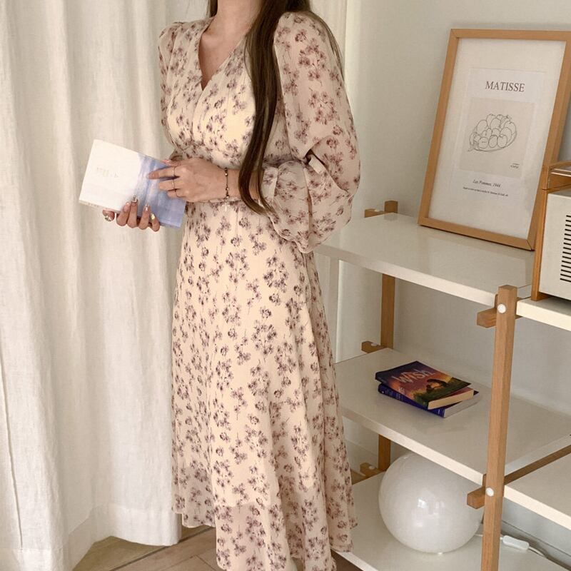 スプリングスタンダードスカート シフォンフローラルドレス レトロ 春物 花柄 フラワーデザイン 左左右右60574410471