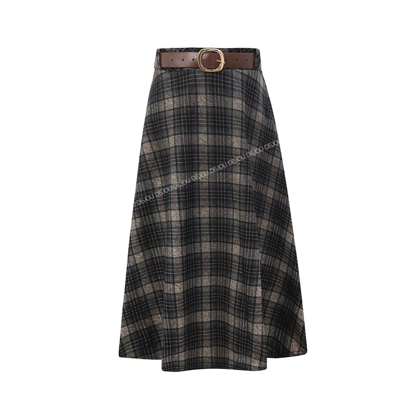 ウィンタースタイル格子柄スカート ハイウェスト 冬物 左左右右80331621488