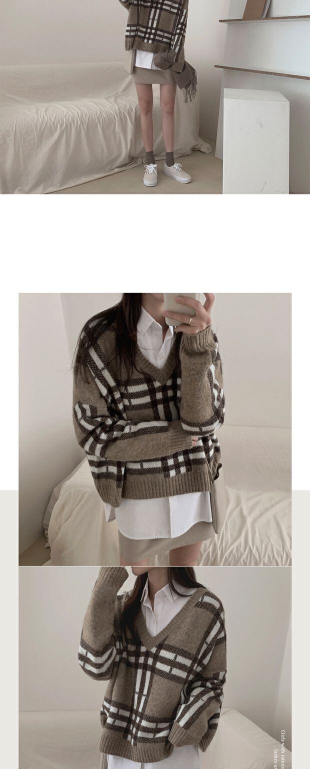ウィンタースタイルカラーセーター トップス ルーズ格子柄レディース 冬物 左左右右78888692190