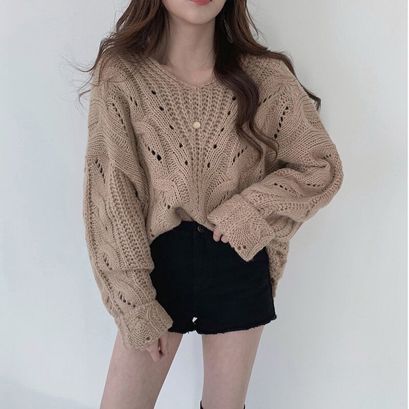 オータムウィンタースタンダードプルオーバー ルーズセーター トップス Vネックレディース レトロ 秋物 冬物 左左右右55786638023