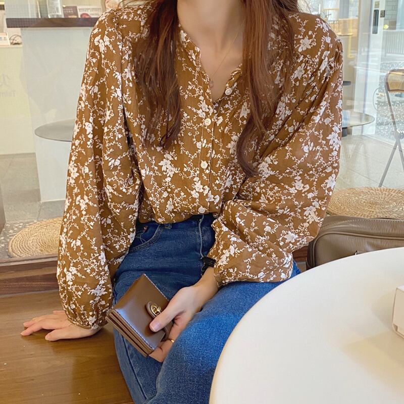 スプリングオータムスタンダードプリントシャツ カーディガンルーズ薄手レディース ロング レトロ 春物 秋物 左左右右14924307146