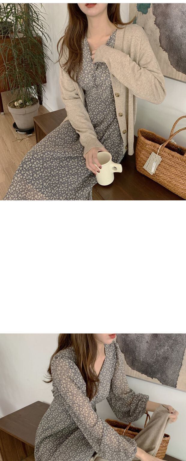 スプリングオータムスタイルスカート ウェストVネックフローラルシフォンドレス 春物 秋物 花柄 フラワーデザイン 左左右右77414451758