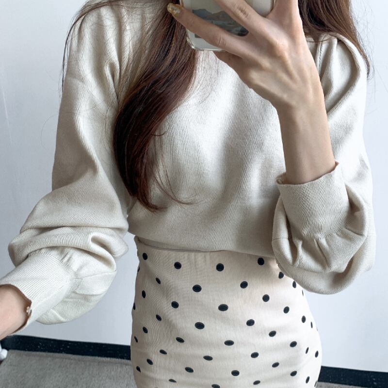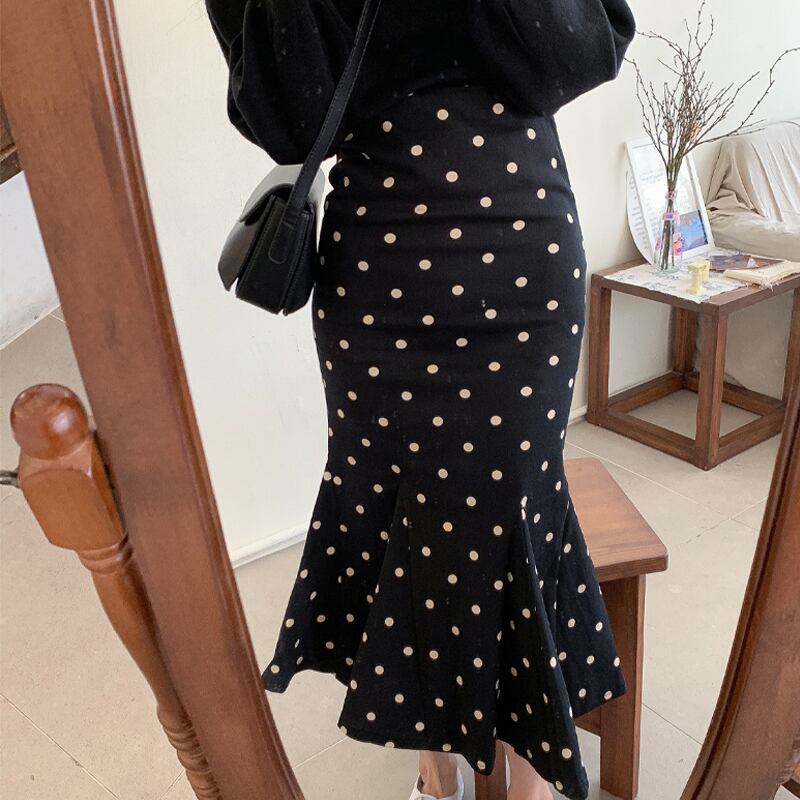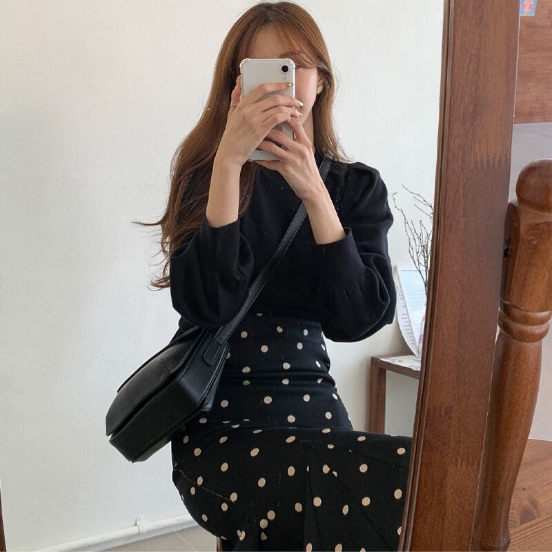 ウィンターニット水玉スカート ハイウェスト ブラウス 冬物 左左右右53917747269