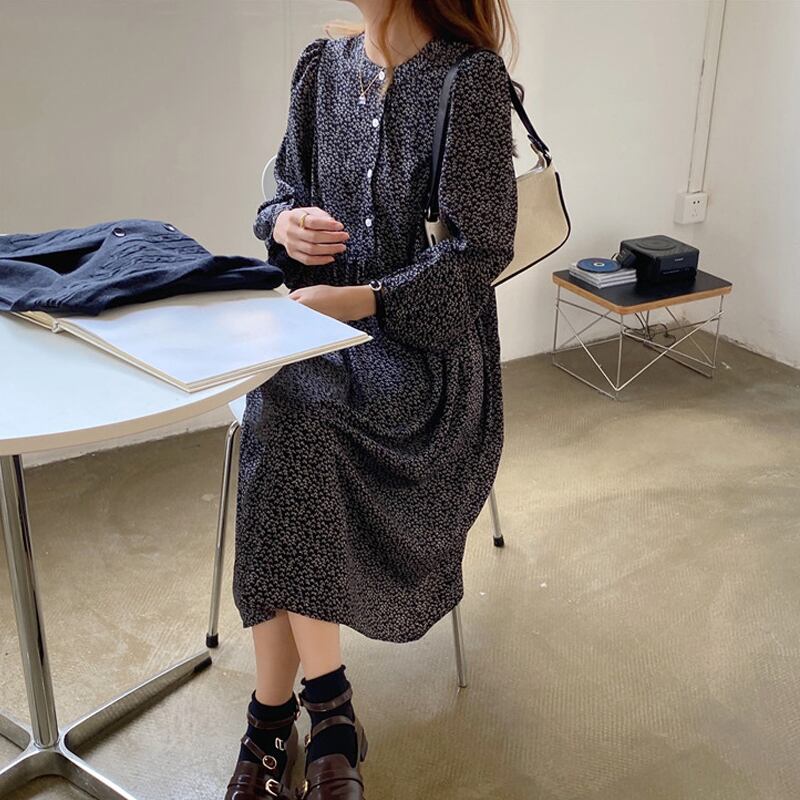 ドレス ルーズフローラルシフォン 花柄 フラワーデザイン 左左右右7425404219