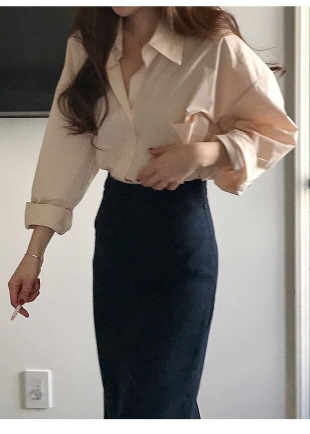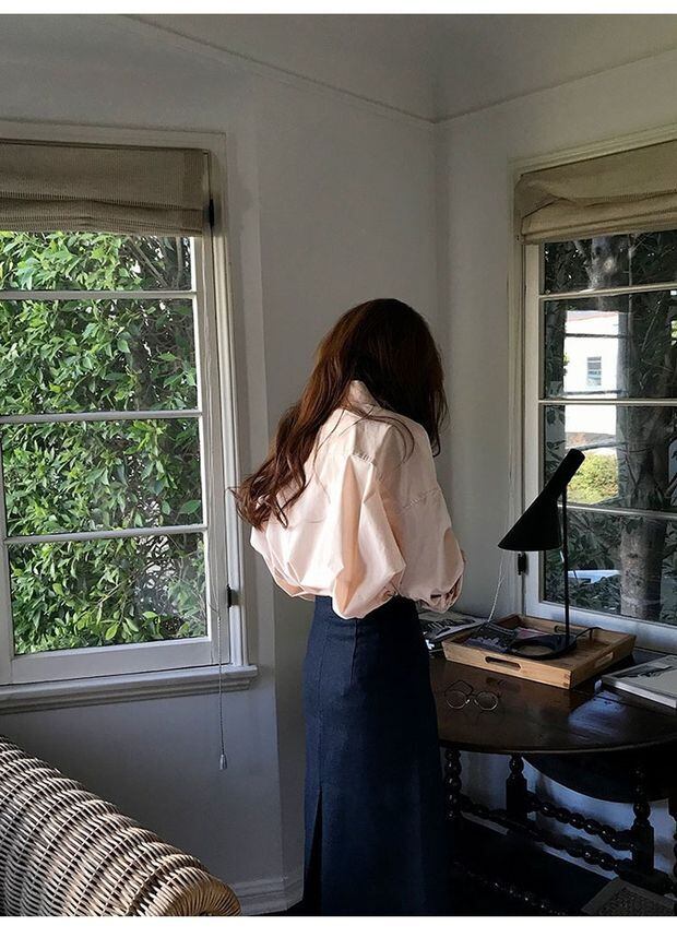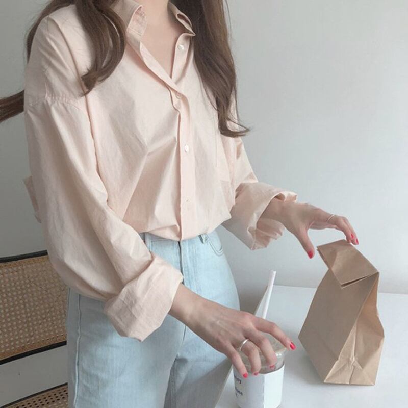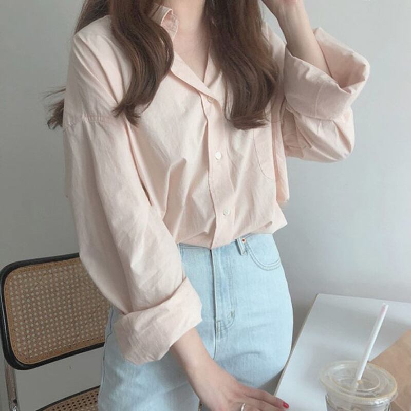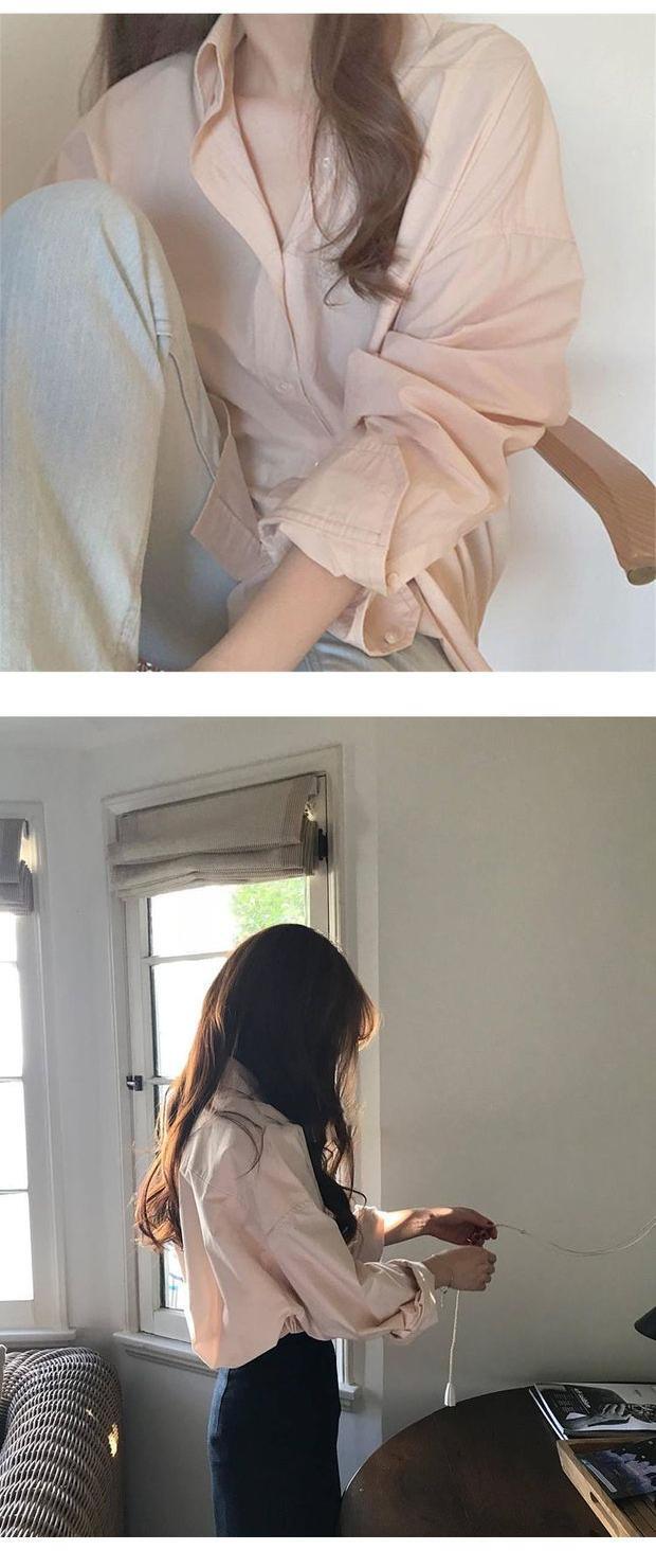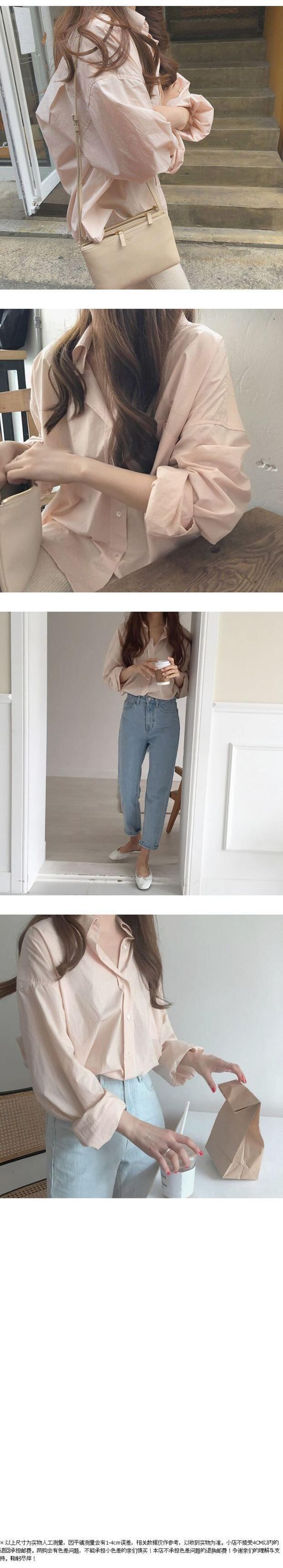 オータムルーズカジュアルスタンダードトップス シャツ カラー ロング ピンク レトロ 秋物 左左右右60695989409