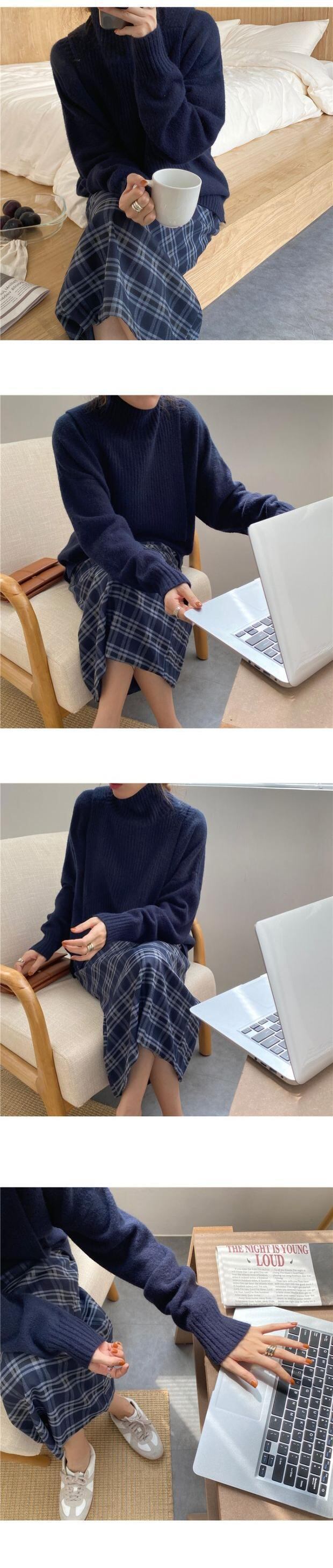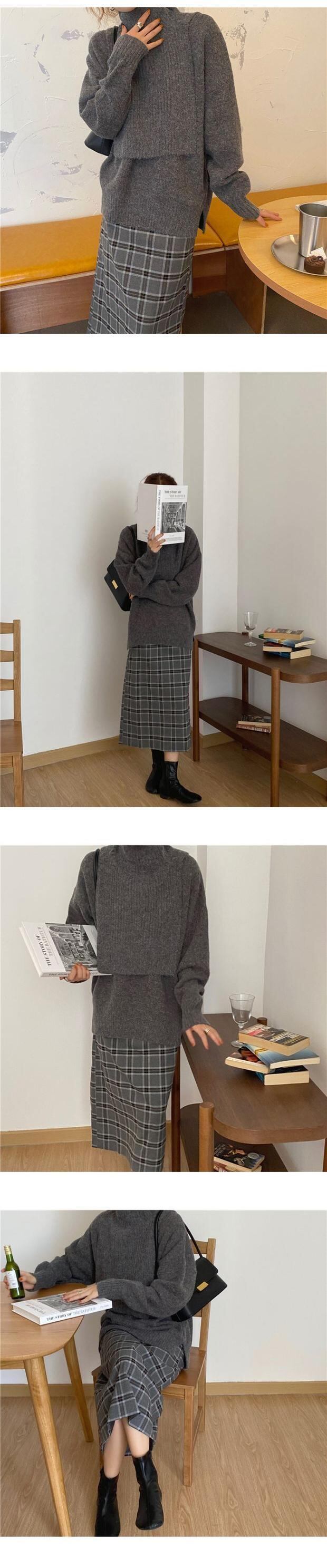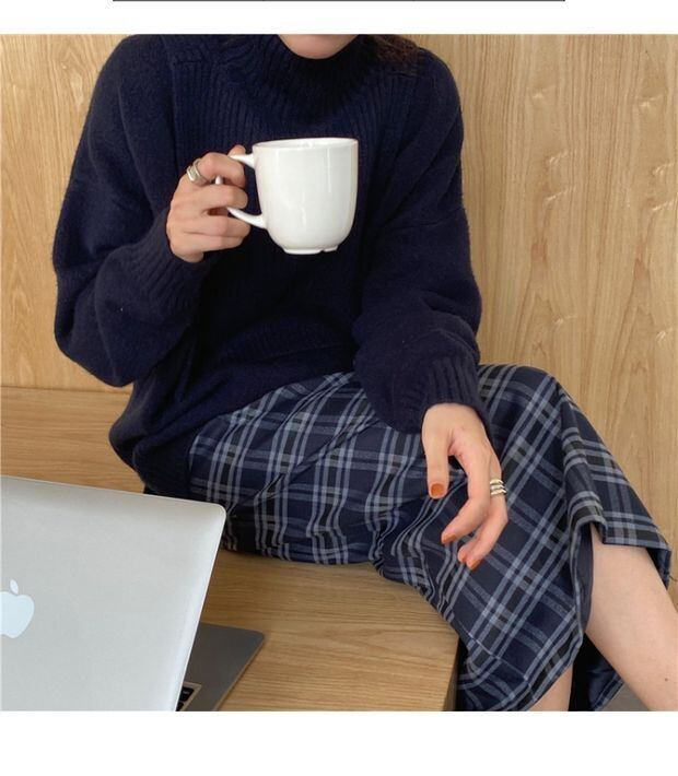 ウィンタースタンダードハイウェスト薄手格子柄スカート レトロ 冬物 左左右右73956748144
