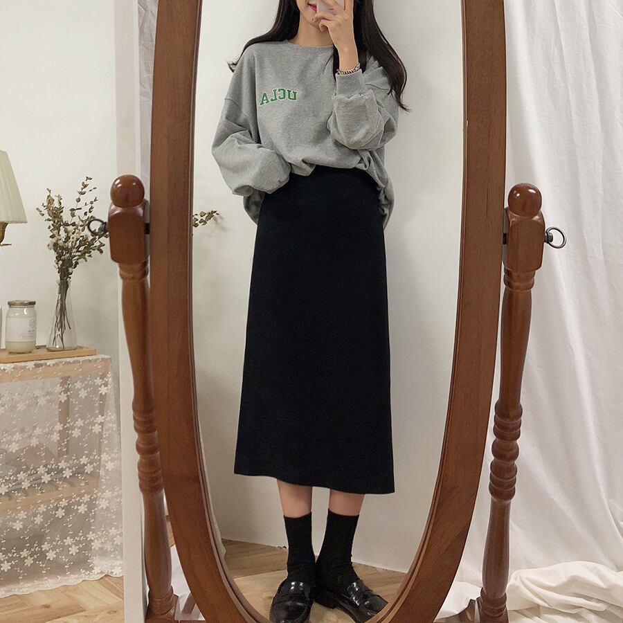 スカート オータムウィンタースタンダード薄手スタイルハイウェストブラック レトロ 秋物 冬物 左左右右3180750