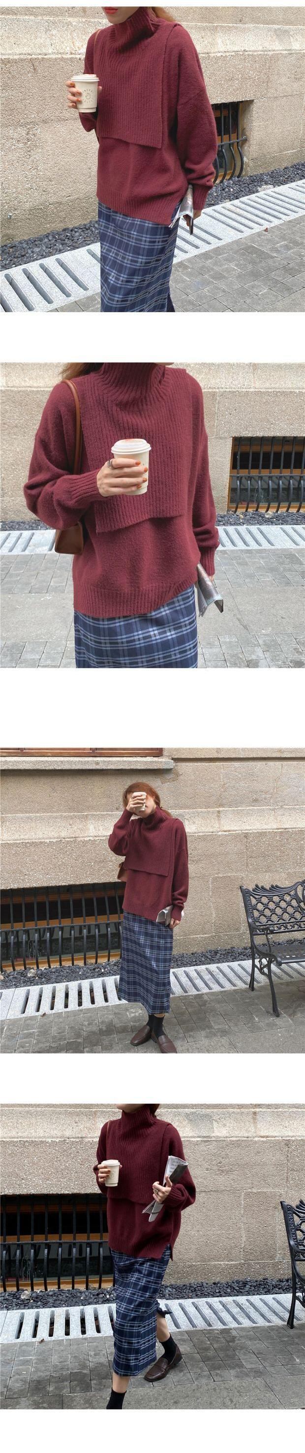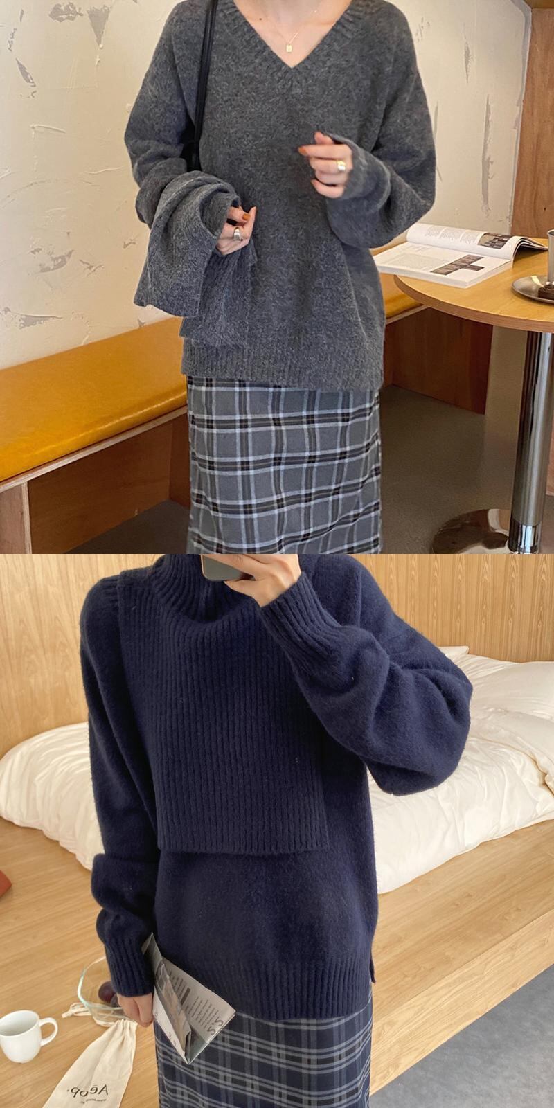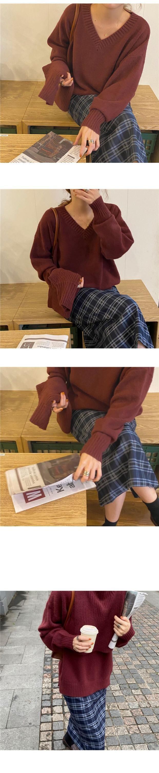 ウィンターニットトップス シャツ Vネックセーター 冬物 左左右右57269428555