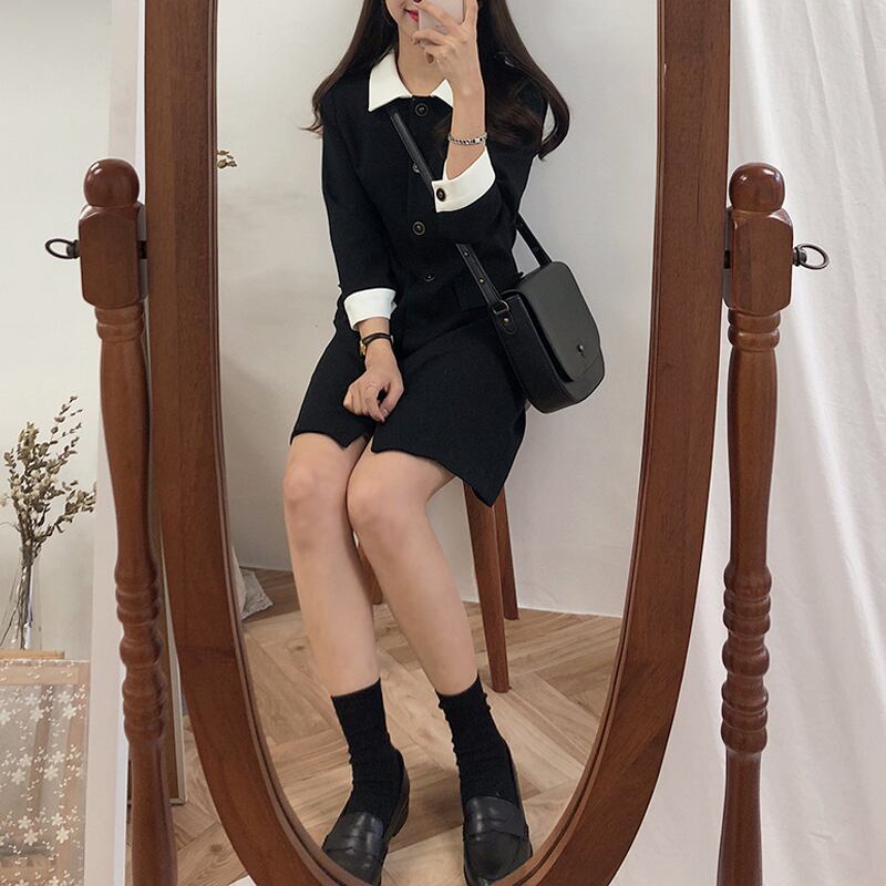 薄手ウィンタースカート Aラインブラックドレス スタンダードスタイル レトロ 冬物 フラワーデザイン 左左右右2333327