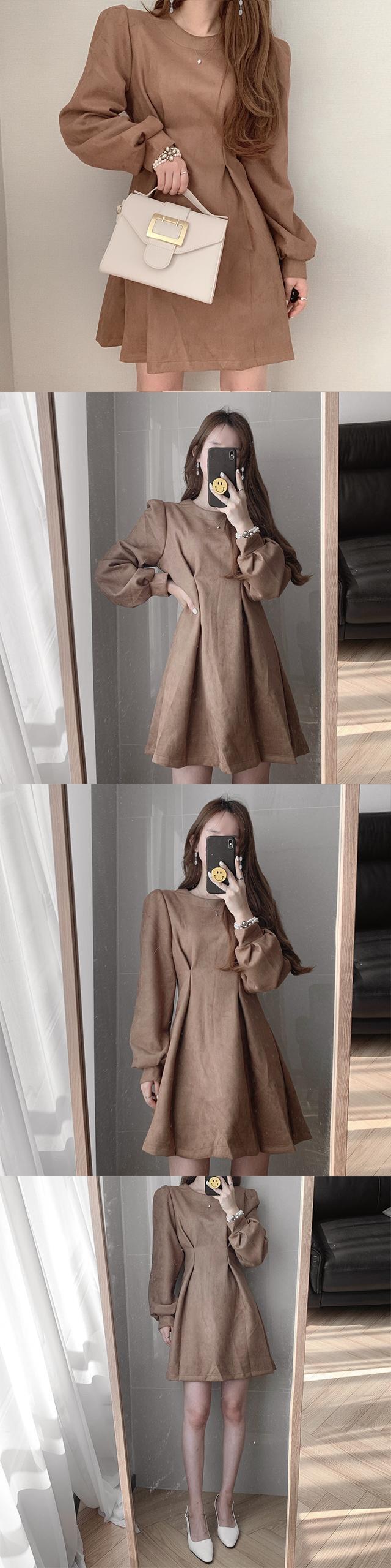 オータムスタンダードスリーブ薄手スウェード長袖ドレス ロング レトロ 秋物 ICC_レディース65567473477