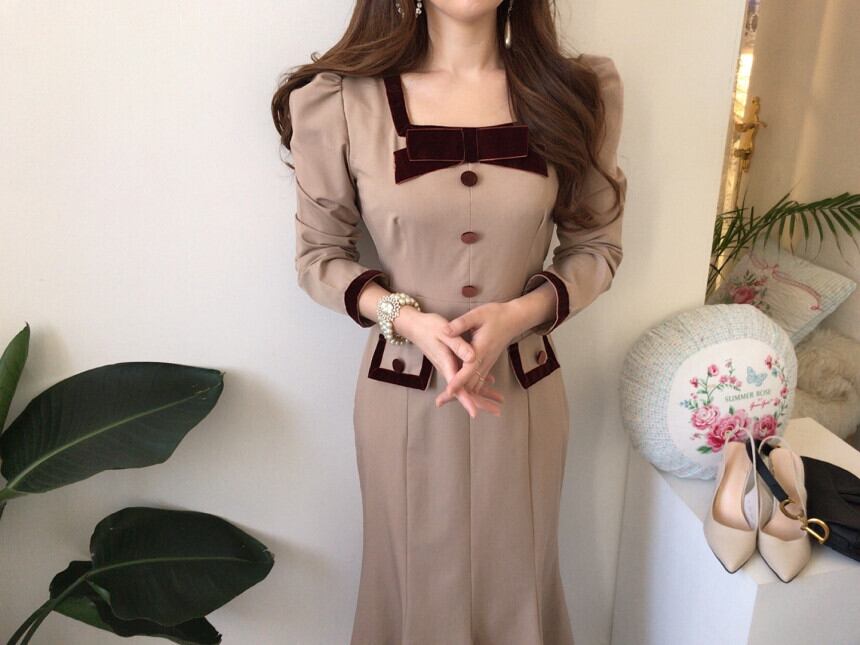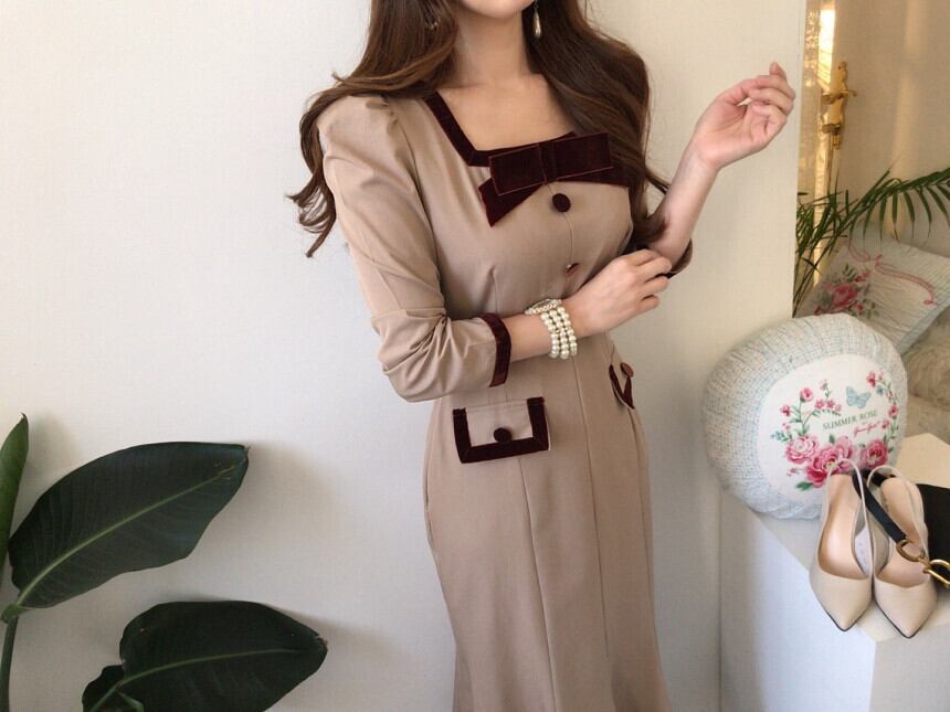 オータムリボンカラーウェストロングドレス 秋物 スクウェア ICC_レディース95368451254