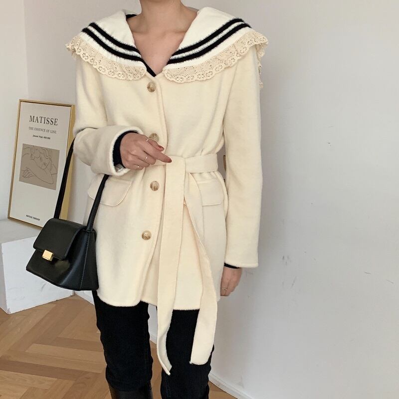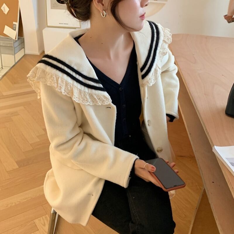 スタンダードネイビーカラーレースジャケット レトロ ステッチ ICC_レディース67463232071