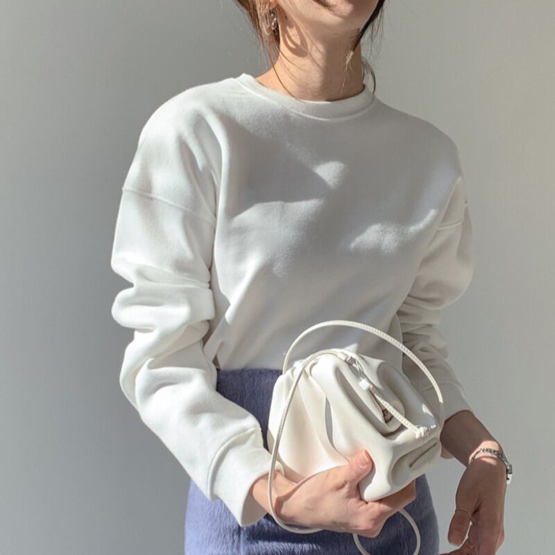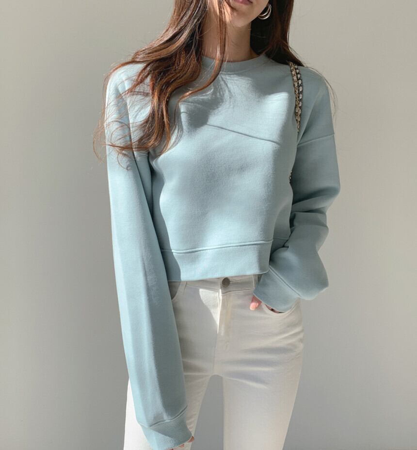スタイルルーズプルオーバー ショートセーター スプリングオータムラウンドネックシャツ トップス 春物 秋物 Oネック ICC_レディース97995890226