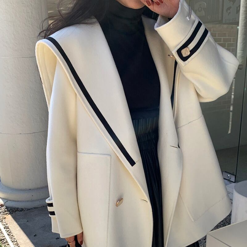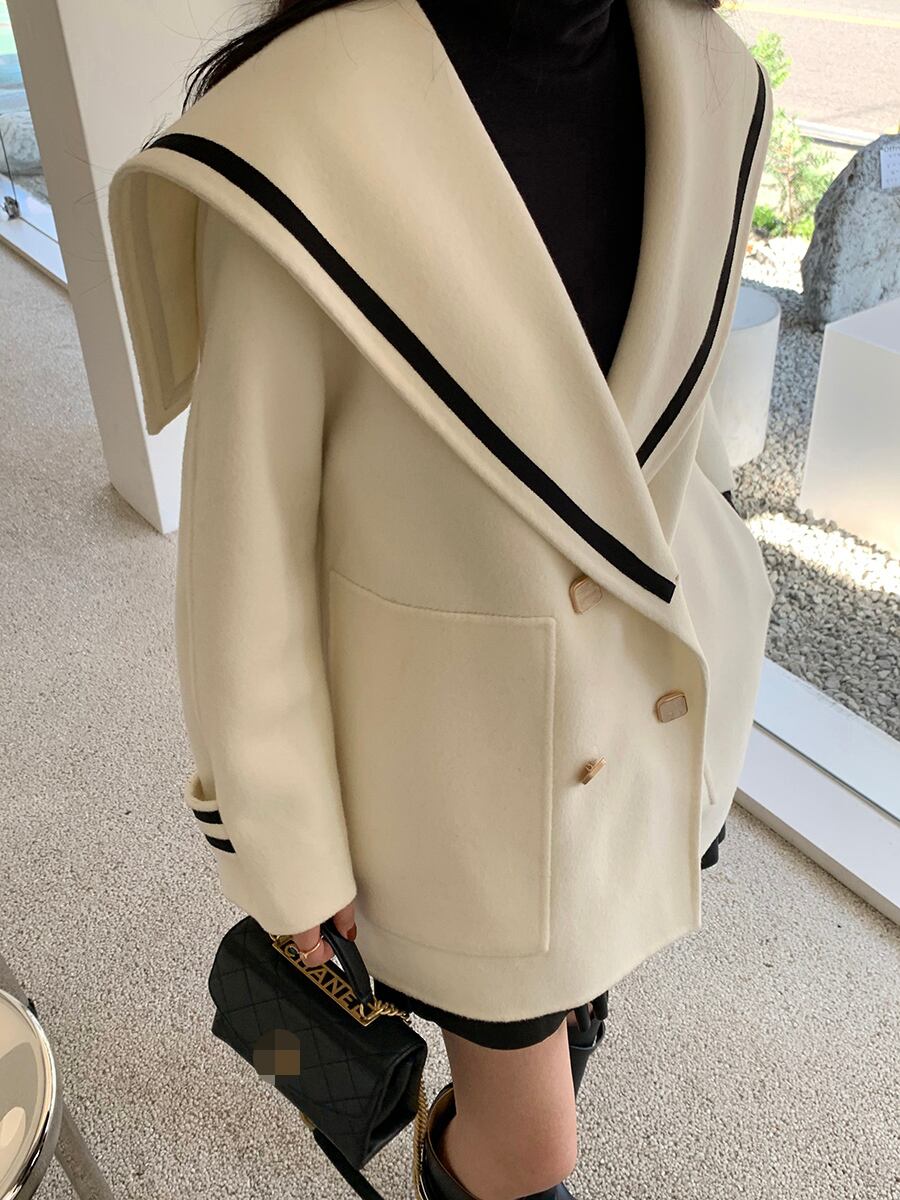 ネイビーカラーコート ウィンターレディースルーズウール 冬物 ICC_レディース48318992094