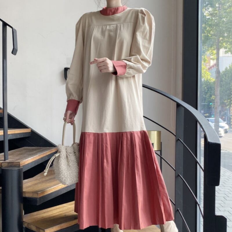 オータムカラーバックリボンプリーツドレス ロングスカート ピンク 秋物 ICC_レディース5456271130