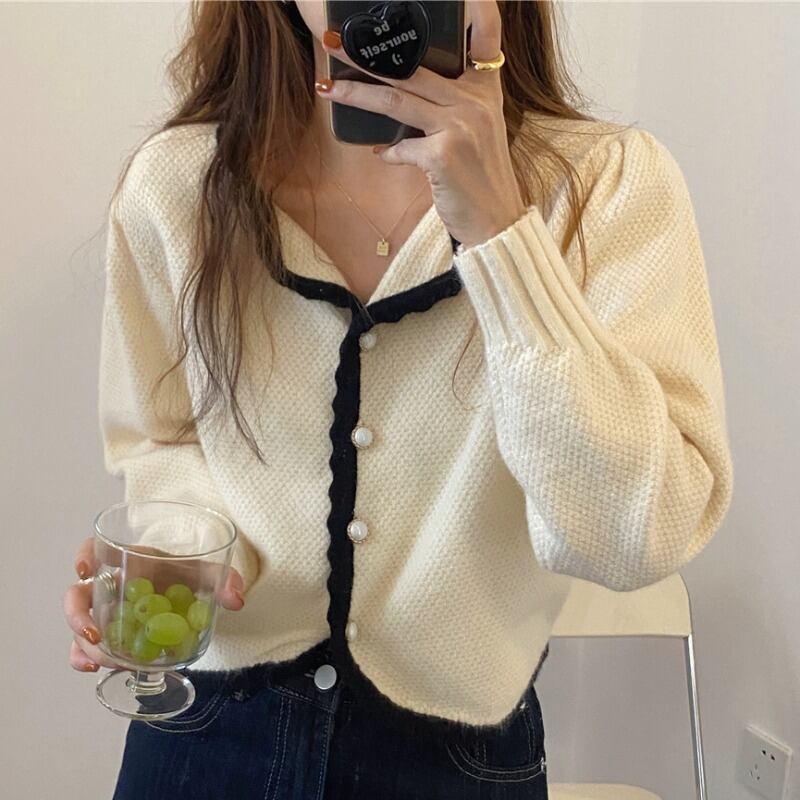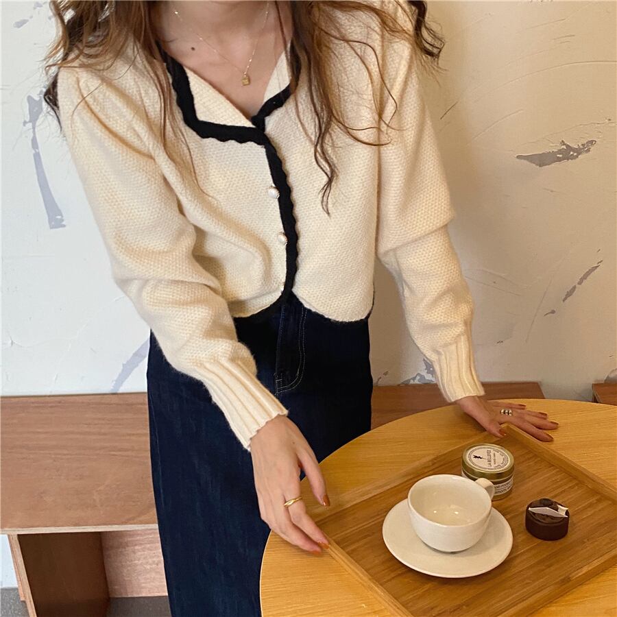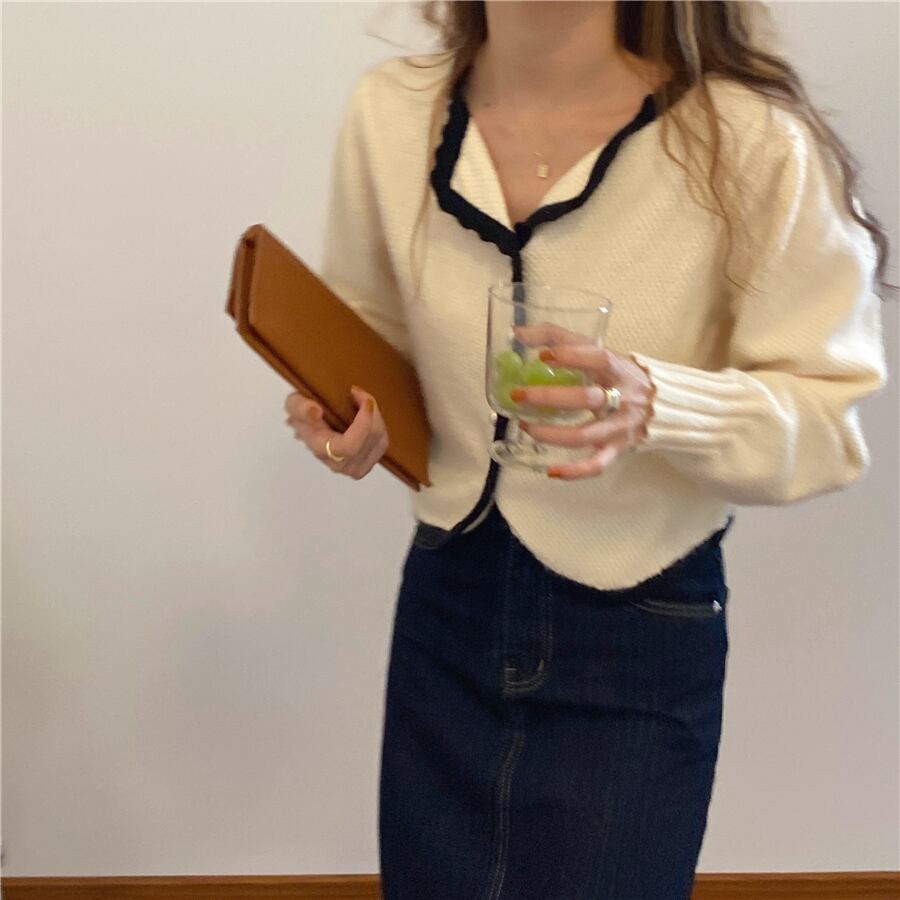 Vネックサイドスリーブルーズ長袖セーター カーディガンジャケット ロング ICC_レディース8600593634