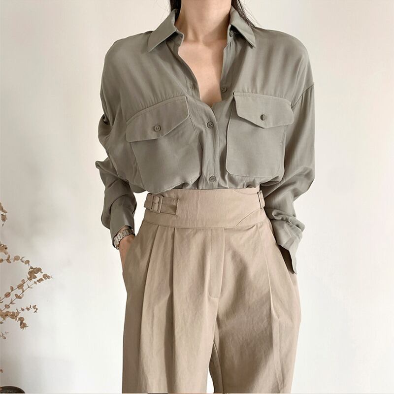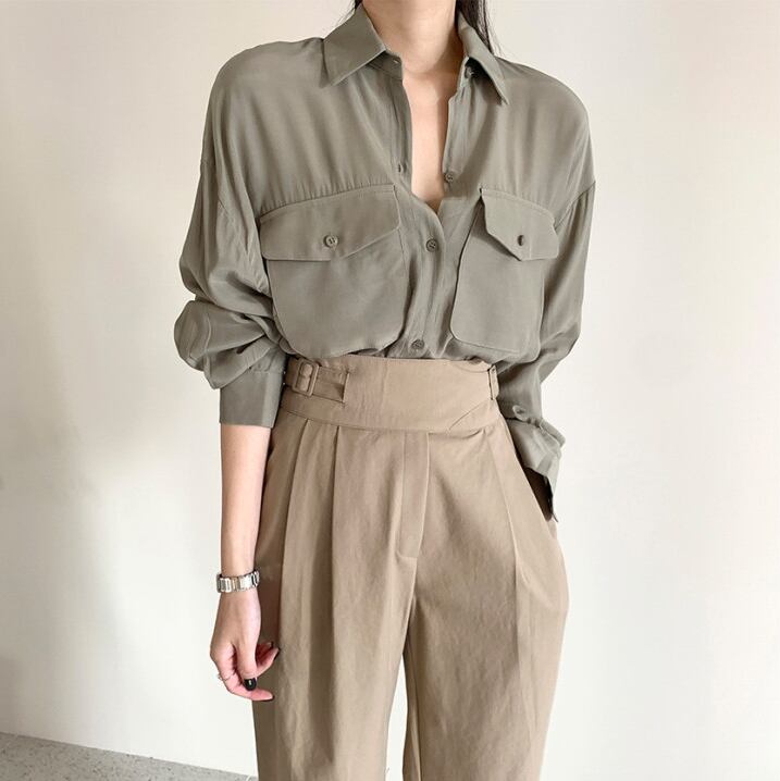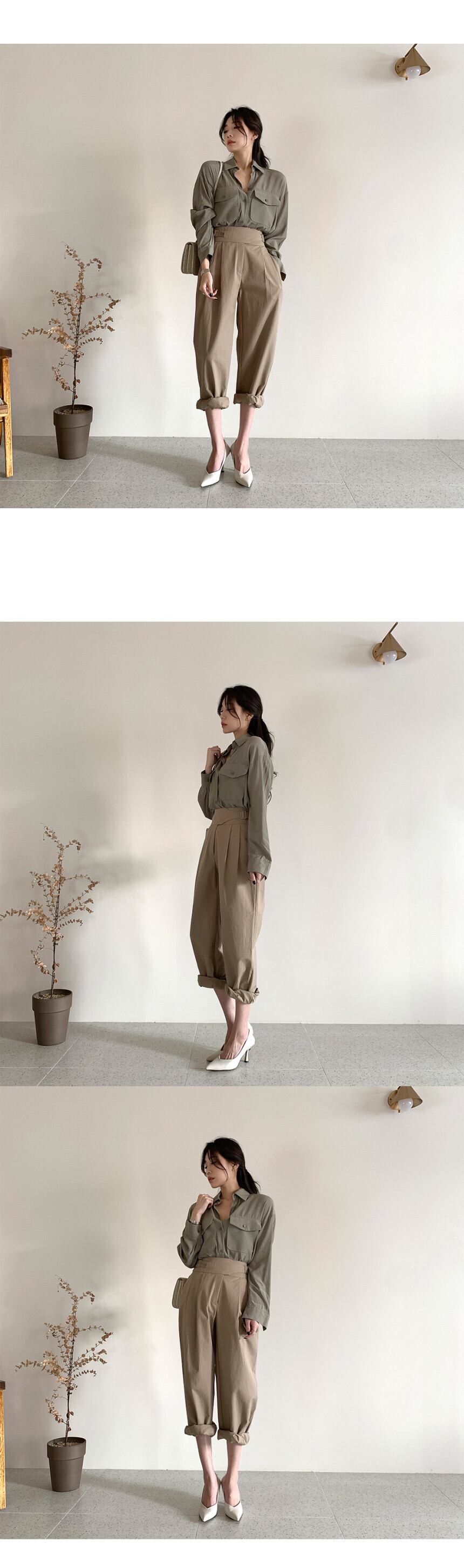 オータムカジュアル長袖スリーブシャツ ハイウェストウェストパンツ ロング 秋物 ICC_レディース66954756581