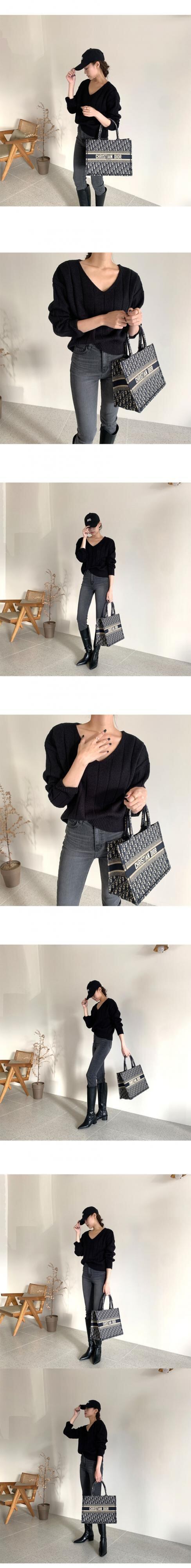 オータムウィンタースタンダードVネックストライプシャツ セーター スタイルレディース ロング レトロ 秋物 冬物 ICC_レディース90826353917