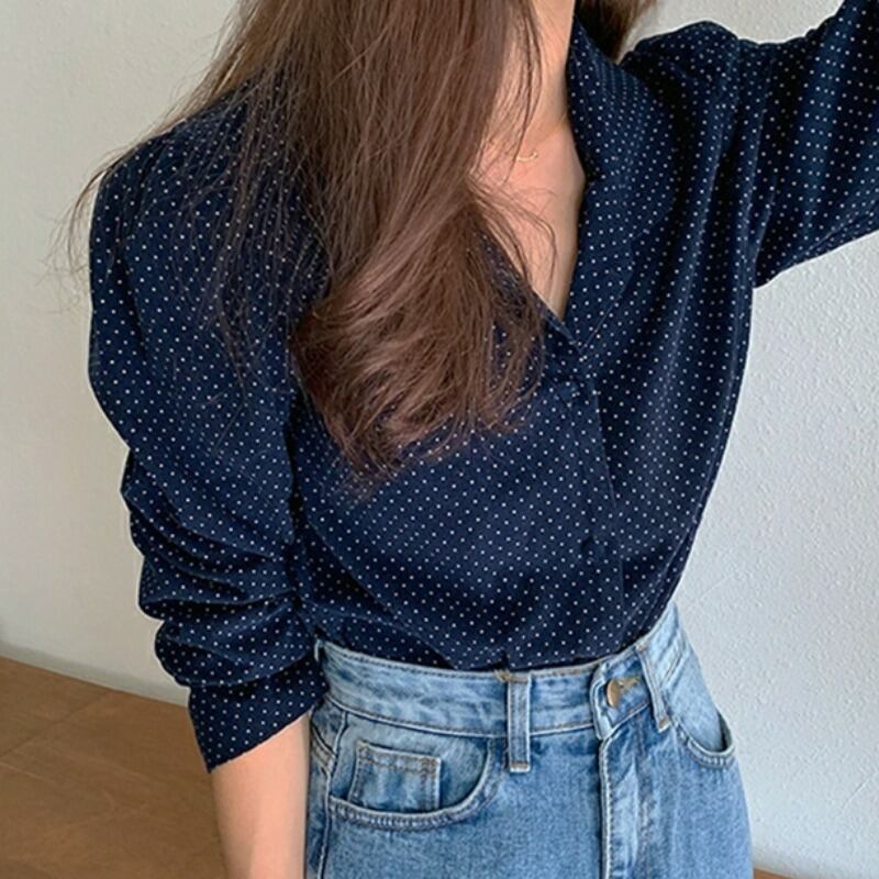 スタンダード水玉トップス ルーズシャツ レトロ ICC_レディース87364196754