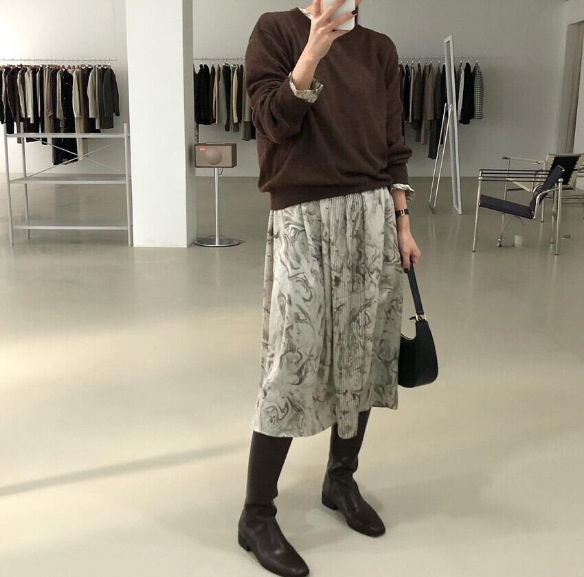 オータムウィンターカラーフローラルドレス ソリッド プルオーバー セーター 秋物 冬物 花柄 ソリッドカラー ICC_レディース32239356206
