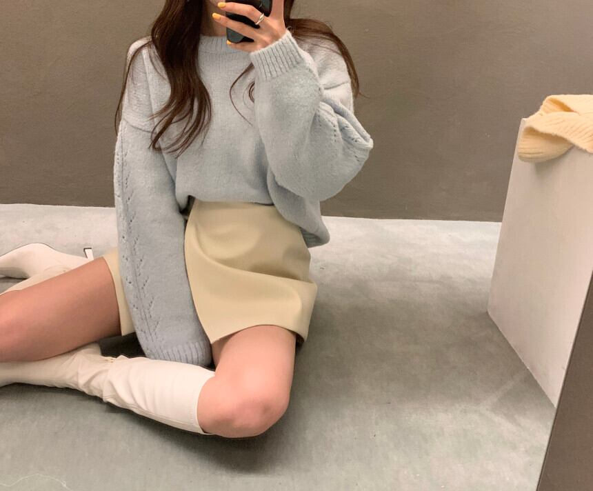 オータムウィンタースリムセーター レザースカート ロング 秋物 冬物 ICC_レディース63360496907