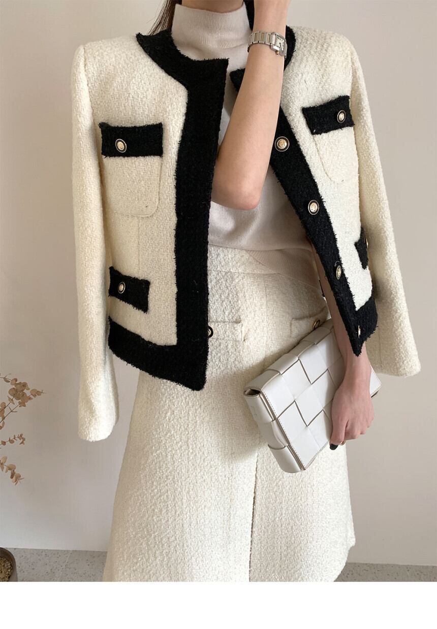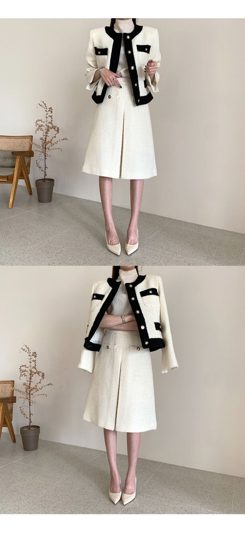 色:白いコート,黒いジャケット,白いスカート,黒スカート