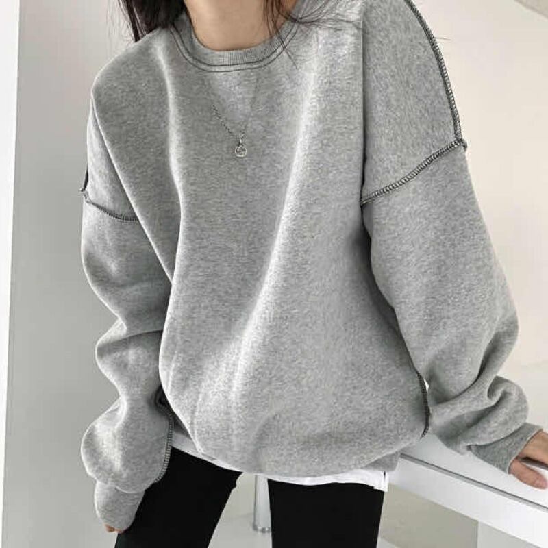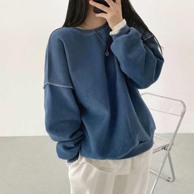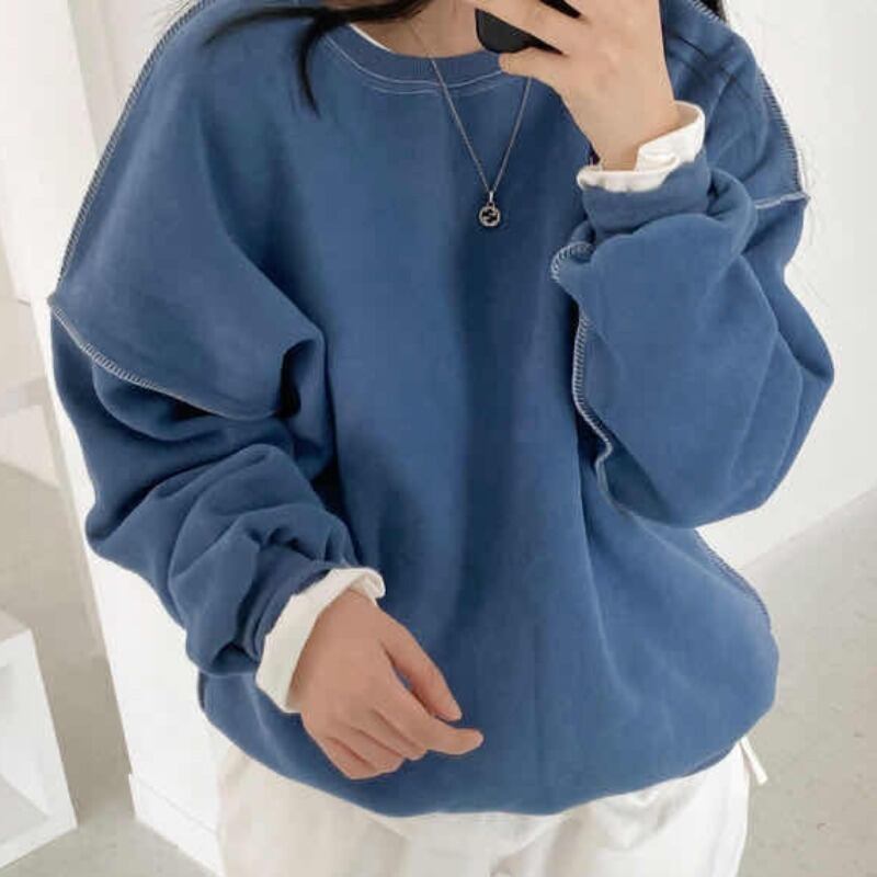 オータムウィンターラウンドネックプルオーバー ルーズラインカジュアルベルベットセーター レディース ロング 秋物 冬物 Oネック ICC_レディース26036887202