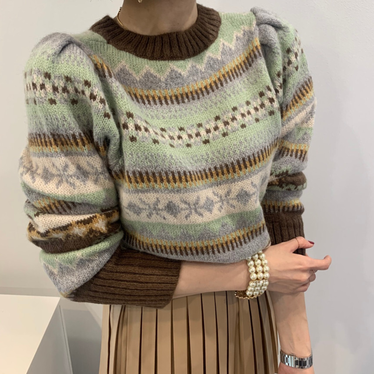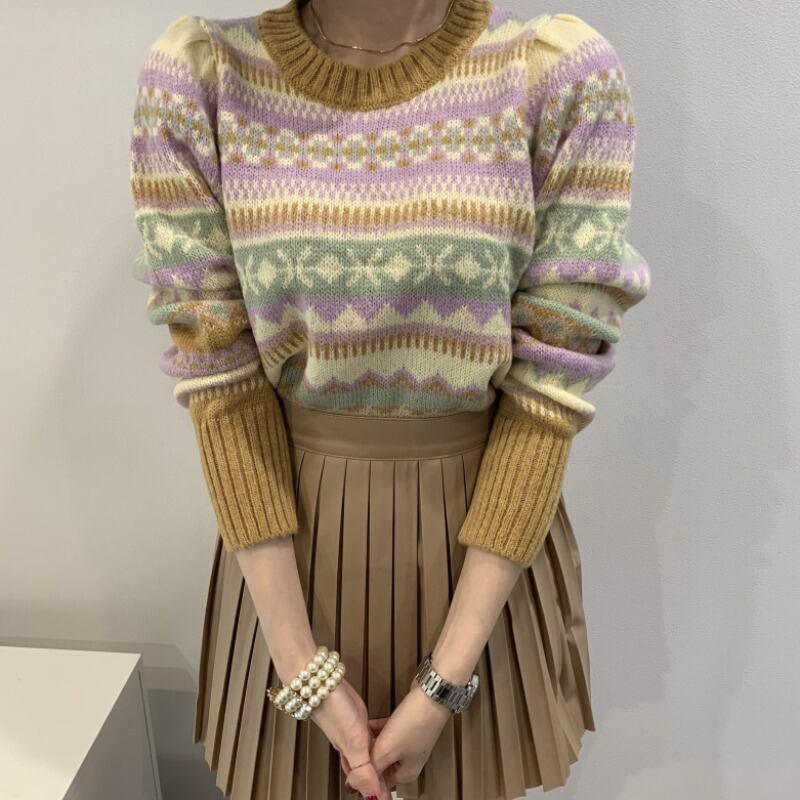 オータムウィンタースタイルラウンドネックカラージャカードセーター ロング 秋物 冬物 Oネック ICC_レディース19192474231