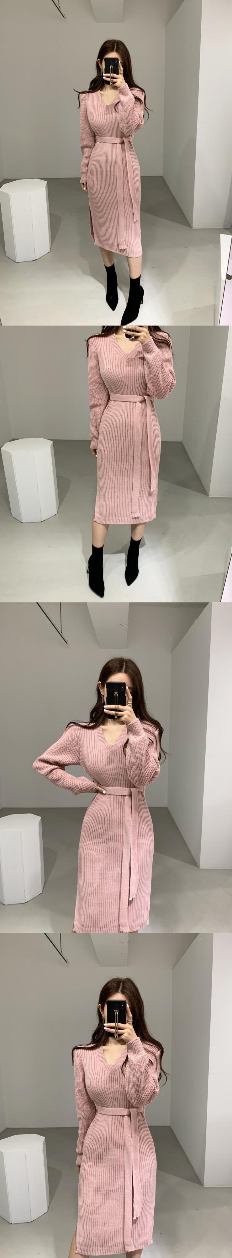 オータムウィンターウェストVネックスリットスリムセーター ニットドレス レース 秋物 冬物 レースアップ ICC_レディース38726058994