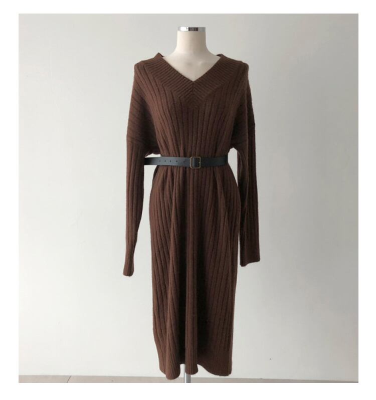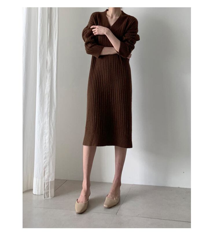 ニットドレス レディースオータムウィンターVネックセーター スカート 秋物 冬物 ICC_レディース95627900589