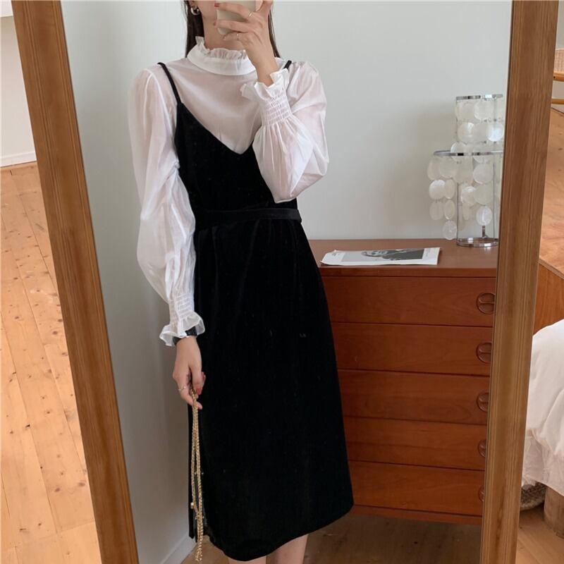 スタイルスリーブシャツ ソリッド カラースカート ドレス ソリッドカラー ICC_レディース55014682536