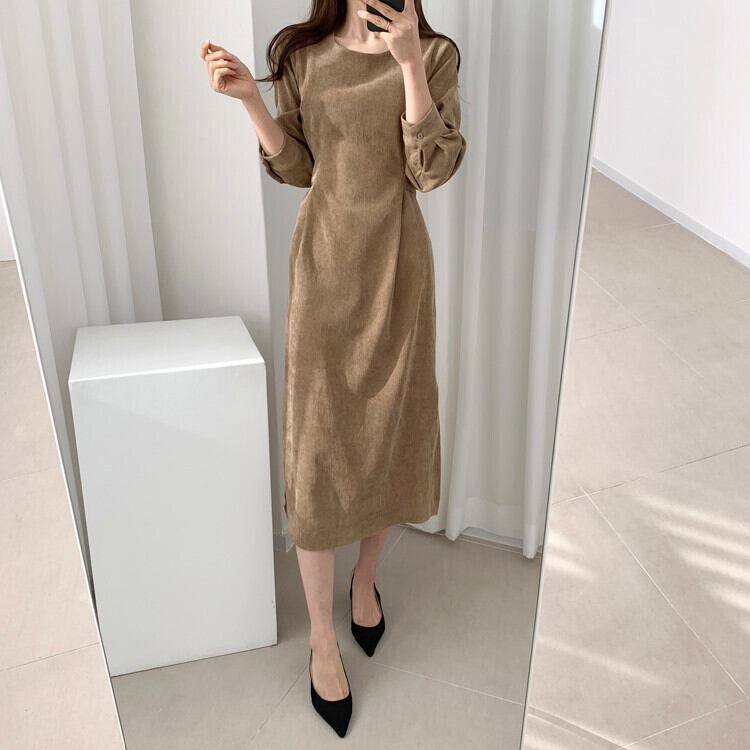 オータムドレス ミニマリストコーデュロイウェストスリム 秋物 ICC_レディース15824406131