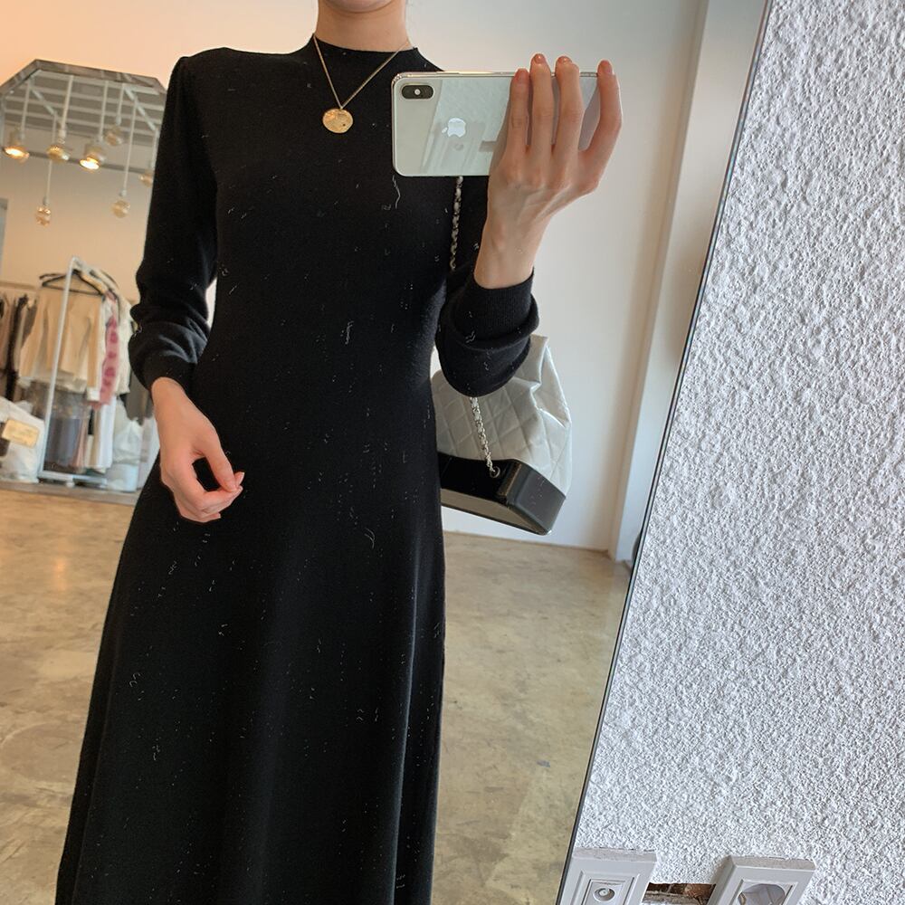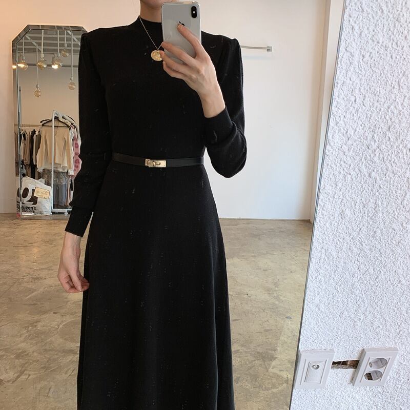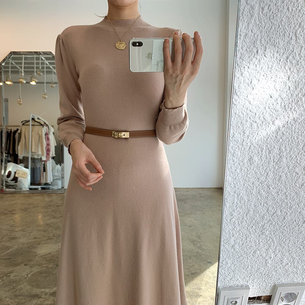 オータムカラースリムロングニットドレス ベルト エレガント 秋物 ハーネス ICC_レディース99670125323