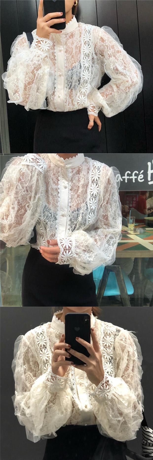 レースシャツ スタイルオータムスタンダードスリムトップス ロング レトロ 秋物 ICC_レディース8424300913