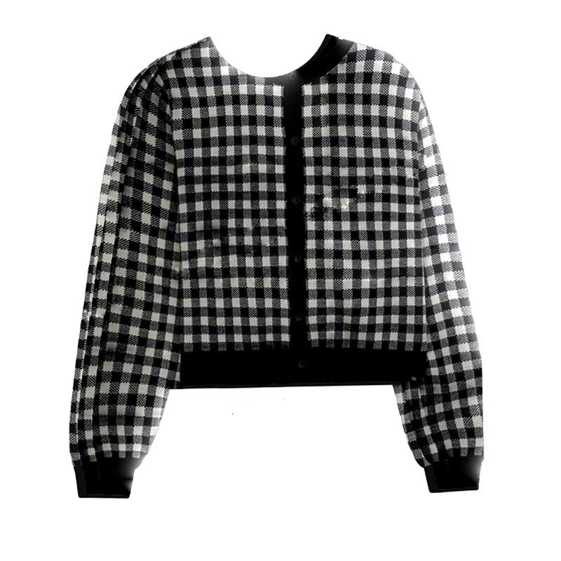 オータムショート格子柄セーター カーディガンレディースルーズコート ロング 秋物 ICC_レディース8682834252