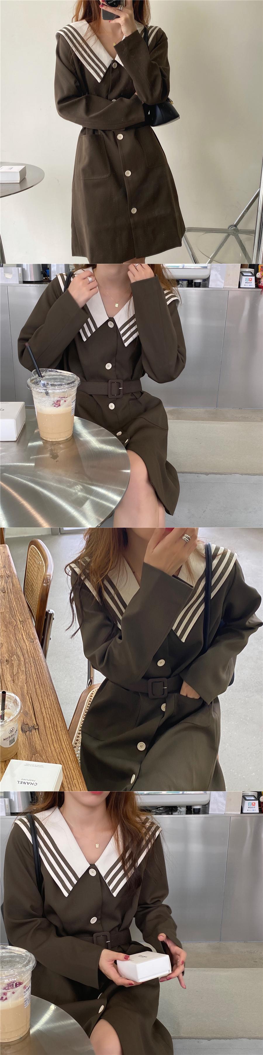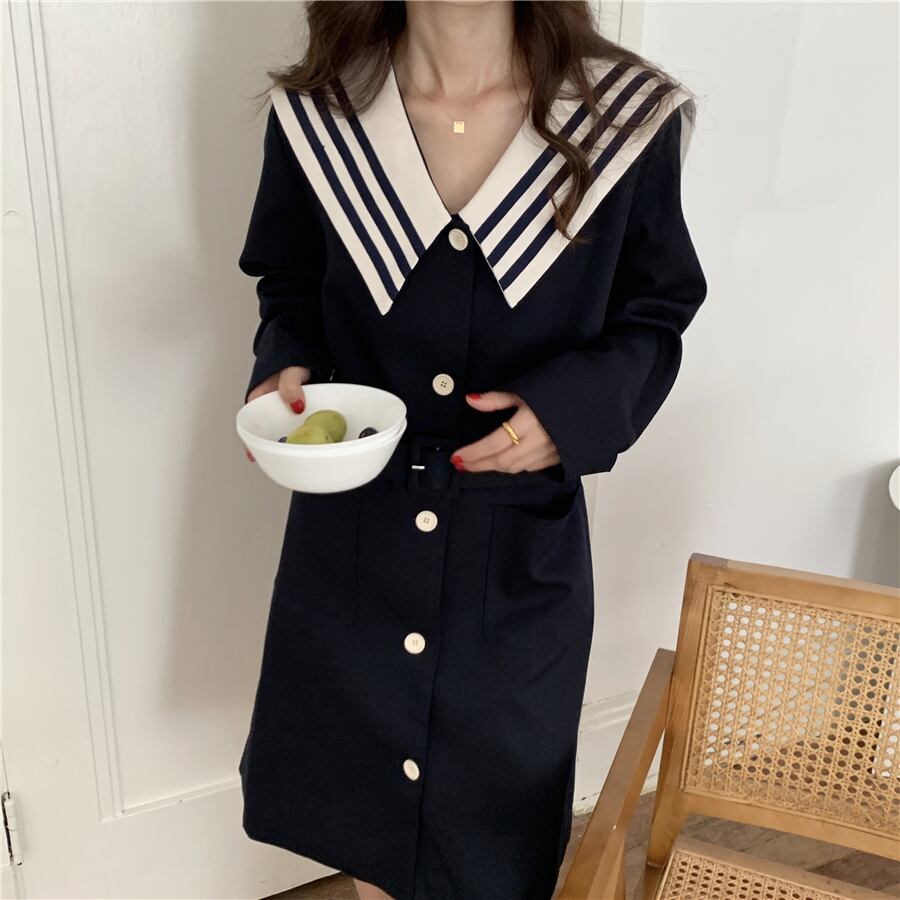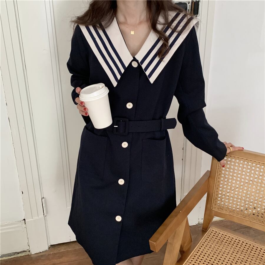 オータムスタイルルーズウェストカラードレス ロング レース 秋物 レースアップ ICC_レディース17016131009