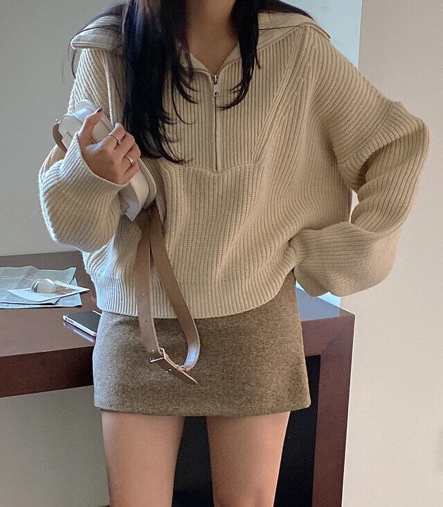 セーター オータムジッパーストライプトップス 長袖スリーブジャケット ロング 秋物 ICC_レディース79188699841