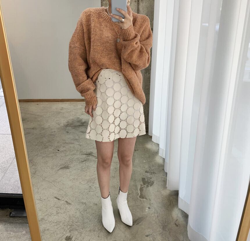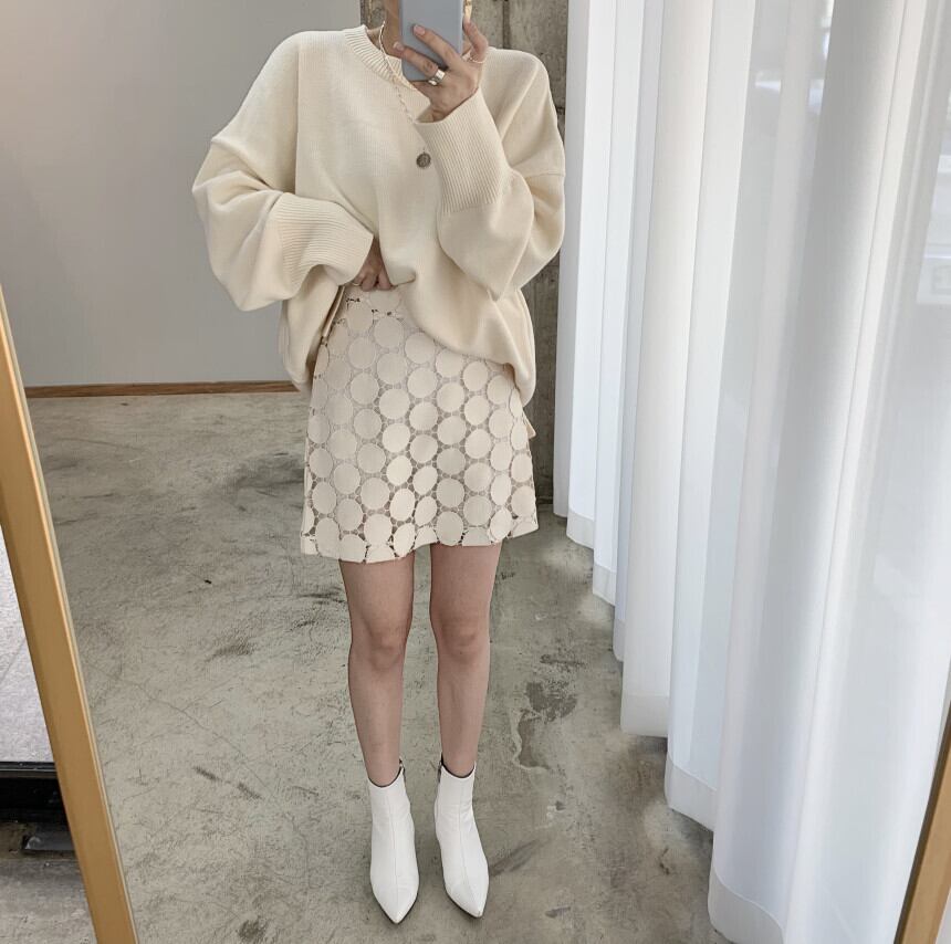 オータムウィンターカラーセーター ハイウェストスカート レディース ロング 秋物 冬物 ICC_レディース91521687267