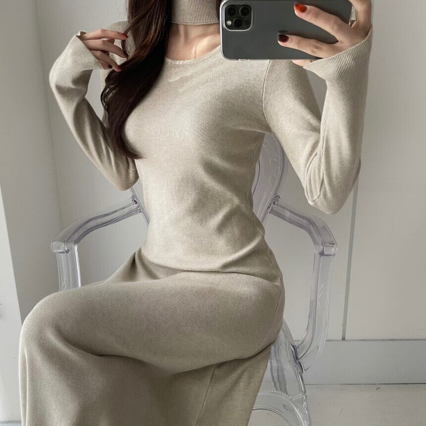 スタイルニットスカート ドレス オータムウィンターロングスリム 長袖 秋物 冬物 ICC_レディース82658133547