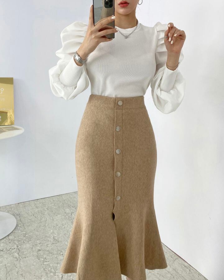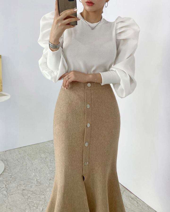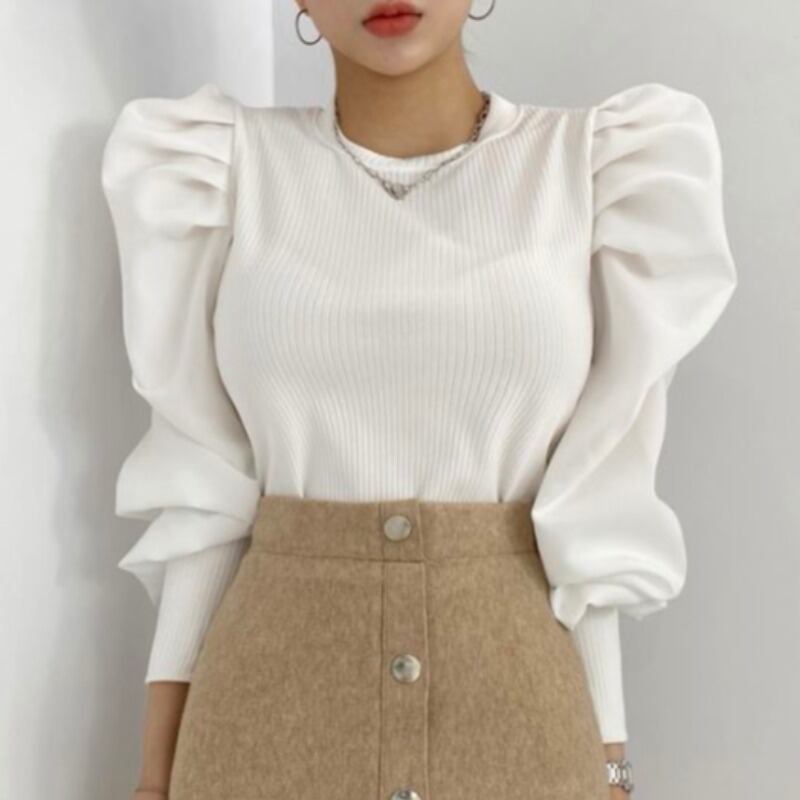 プリーツラウンドネックプルオーバー ソリッド カラーTシャツ レディース ロング コットン Oネック ソリッドカラー ステッチ ICC_レディース98162992687