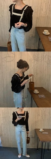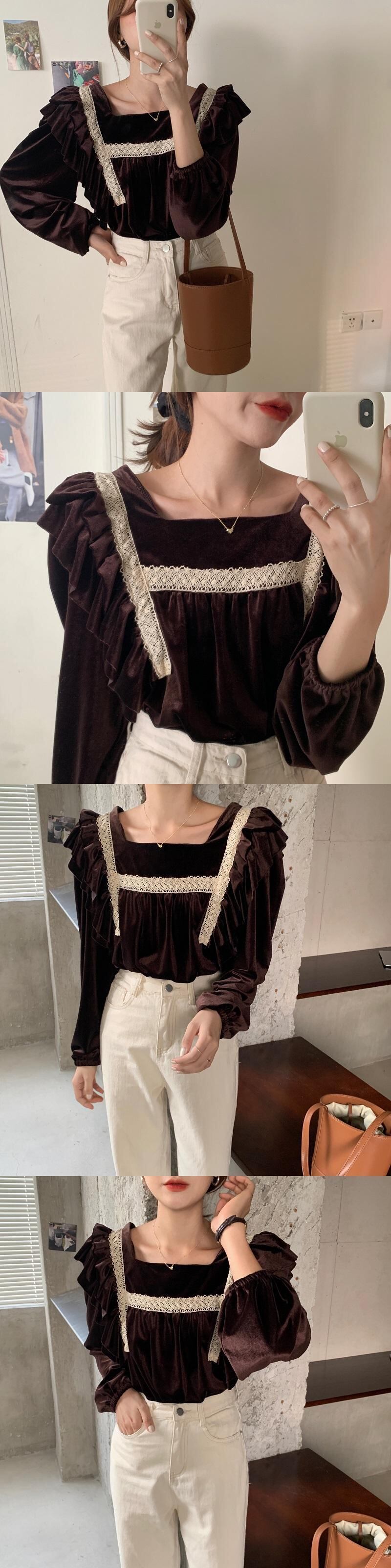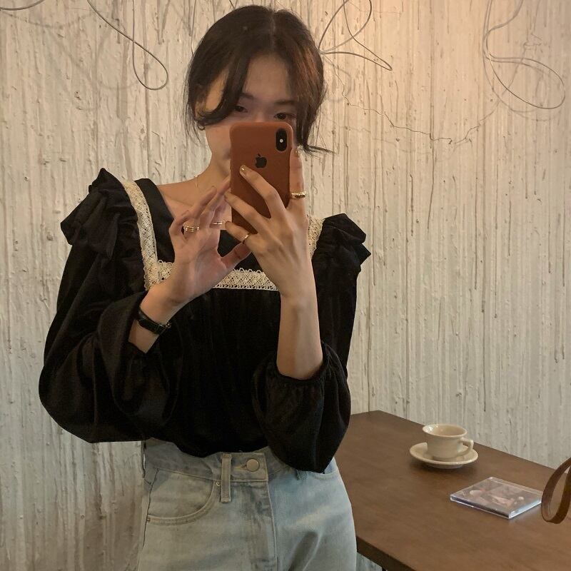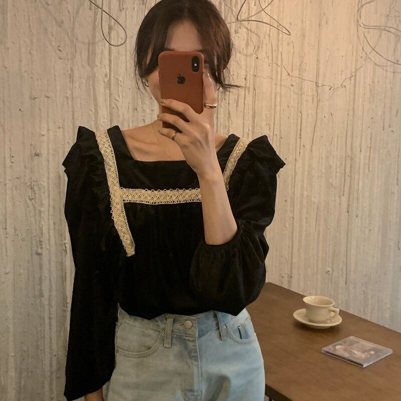スタンダードカラーシャツ レディーススプリングオータムレースベルベットスタイル レトロ 春物 秋物 スクウェア ICC_レディース1047806899