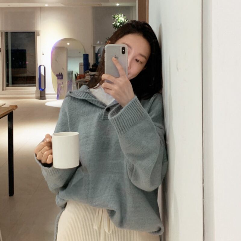 オータムウィンタースタイルプルオーバー セーター レディースルーズフードニットコート 秋物 冬物 ICC_レディース65674755633