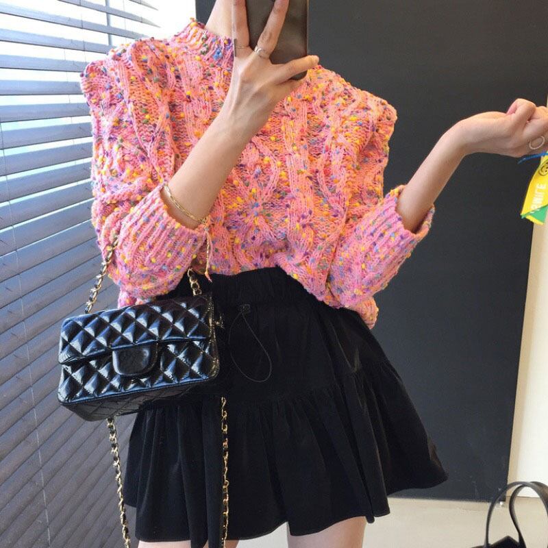 オータムウィンタースタイルセーター ギャザースカート レディース レッド 大人ガーリー スウィート キュート カジュアル ふわふわ 秋物 冬物 ICC_レディース93000801827