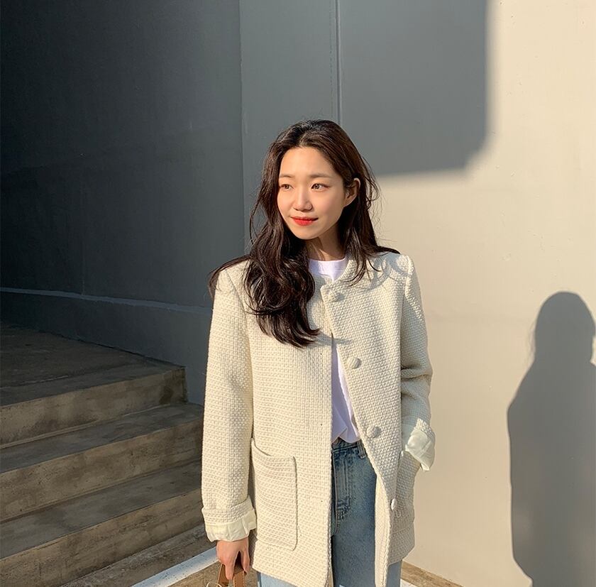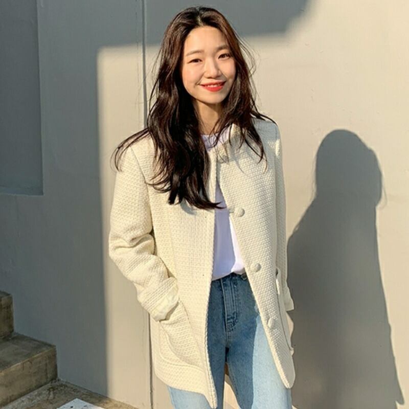 オータムウィンターダブルラウンドネック長袖スリーブシングルブレストルーズホワイトコート レディース ロング 秋物 冬物 Oネック ICC_レディース69744127749