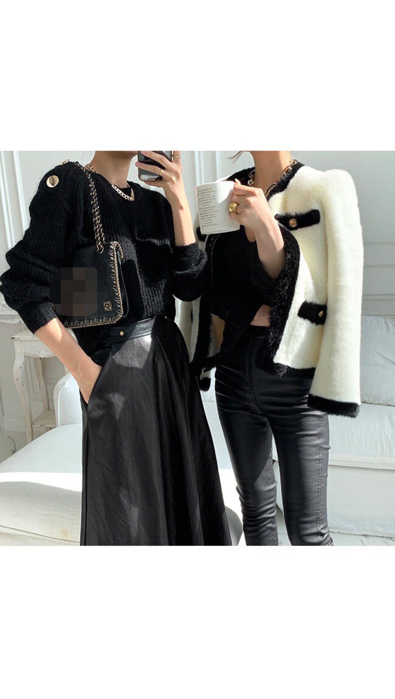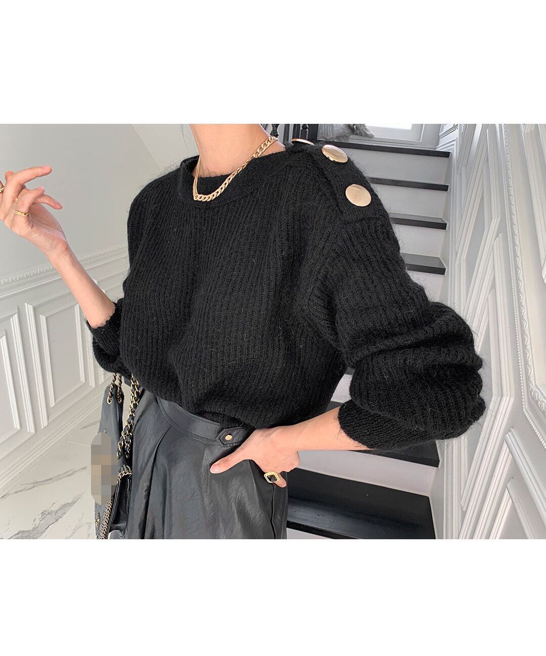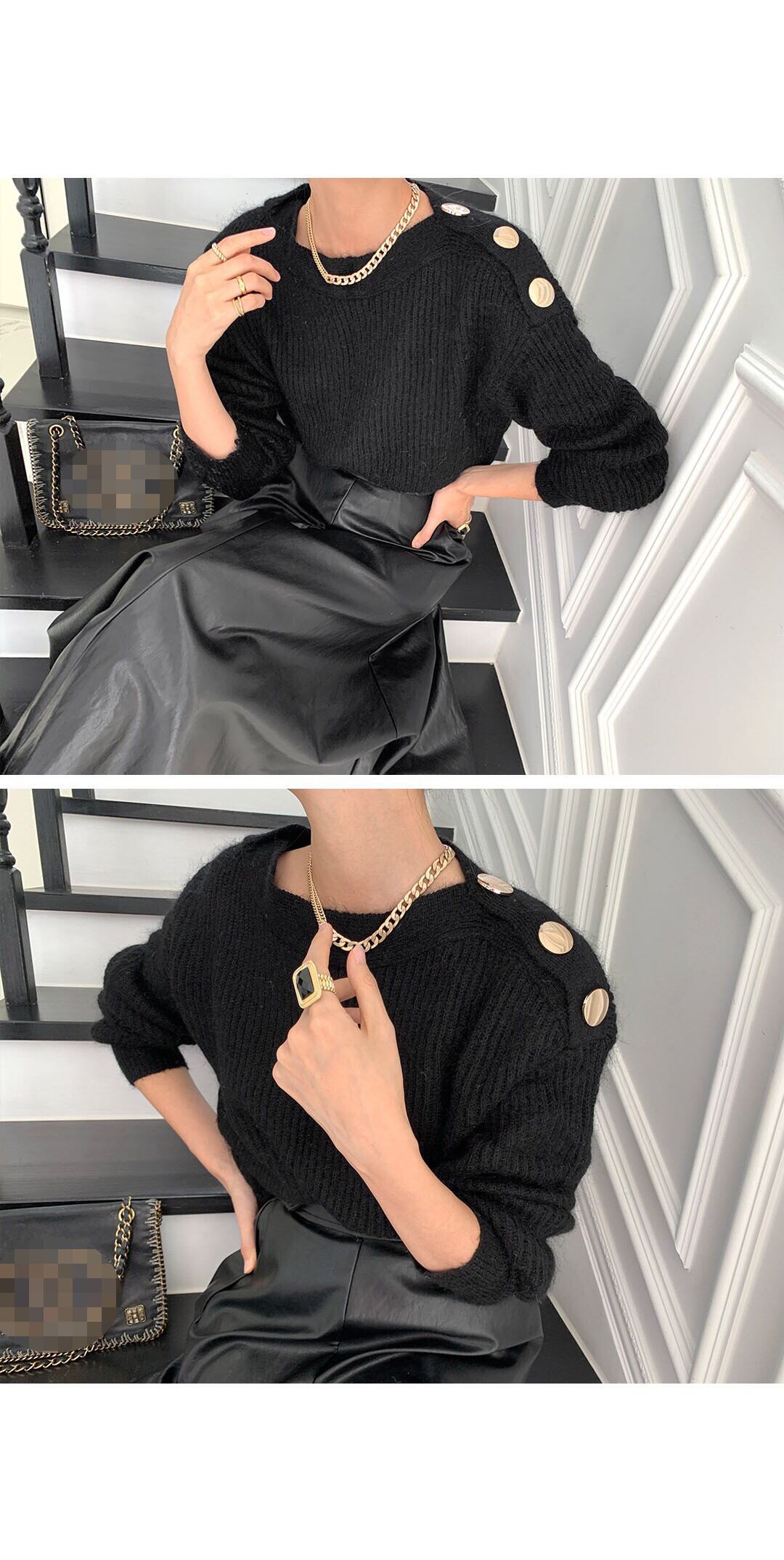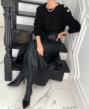 オータムウィンタースタンダードラウンドネックルーズニットセーター ハイウェストウェストレザースカート ロング レトロ 秋物 冬物 Oネック ICC_レディース20089057871