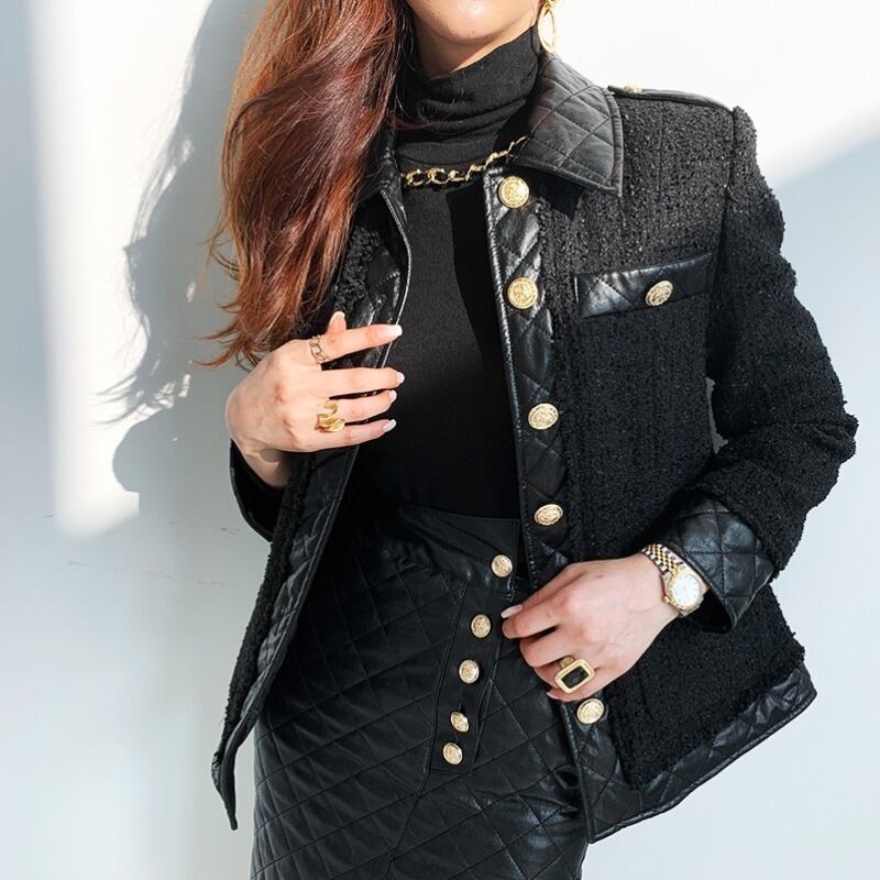ボタンジャケット スリットスカート ウィンター エレガント 冬物 ステッチ ICC_レディース68148181483