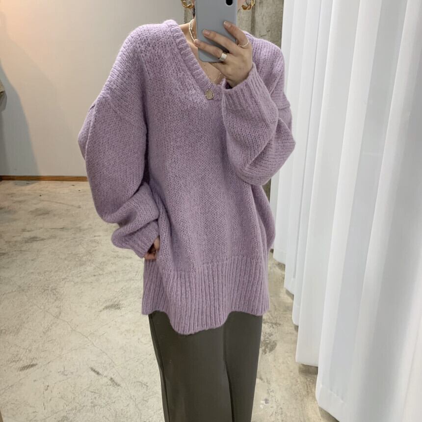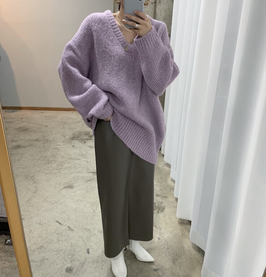 セーター オータムウィンタースタイルルーズ薄手Vネックトップス ロング 秋物 冬物 ICC_レディース94616322335