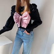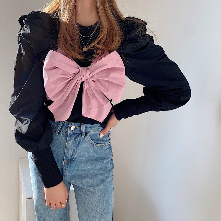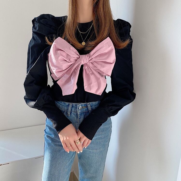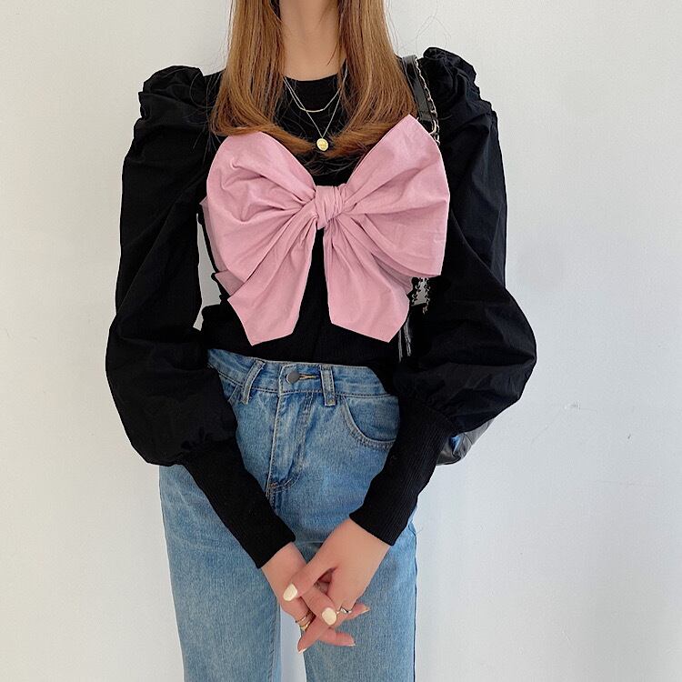 オータムウィンタースタイルスリーブ長袖シャツ レディース ロング リボン 大人ガーリー スウィート キュート カジュアル 秋物 冬物 ICC_レディース16168099989