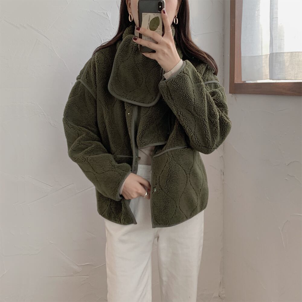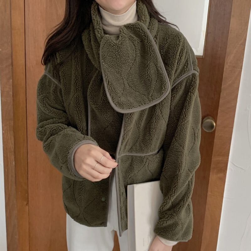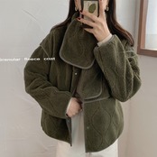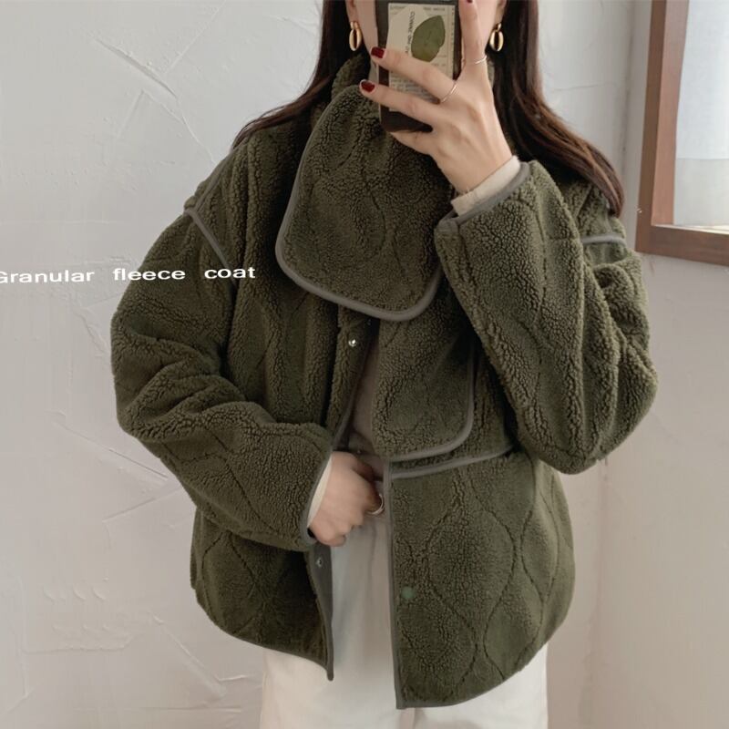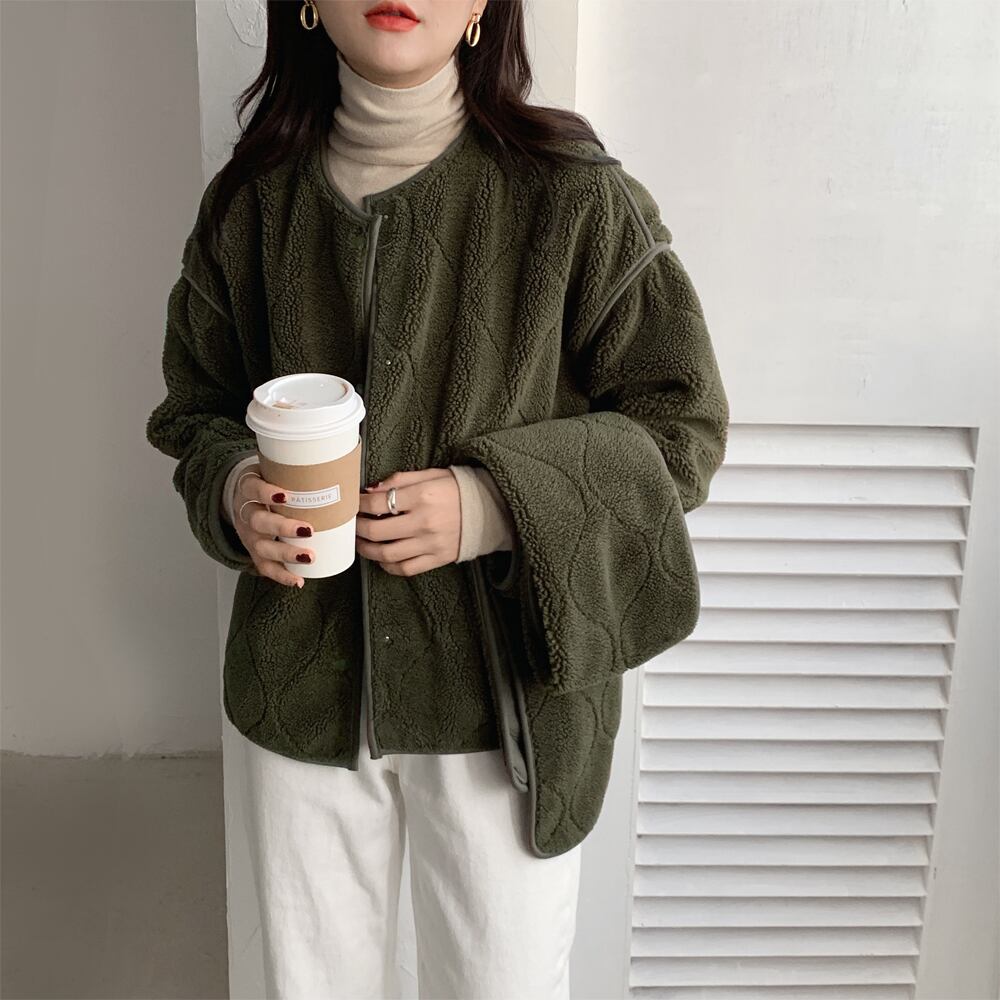 スタイルラウンドネックスタンダードグリーンルーズコート レディース レトロ Oネック ICC_レディース6609393622