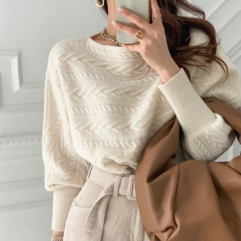 オータムウィンターラウンドネックショートセーター ニットハイウェストウェストレースパンツ 秋物 冬物 Oネック ICC_レディース16782388111